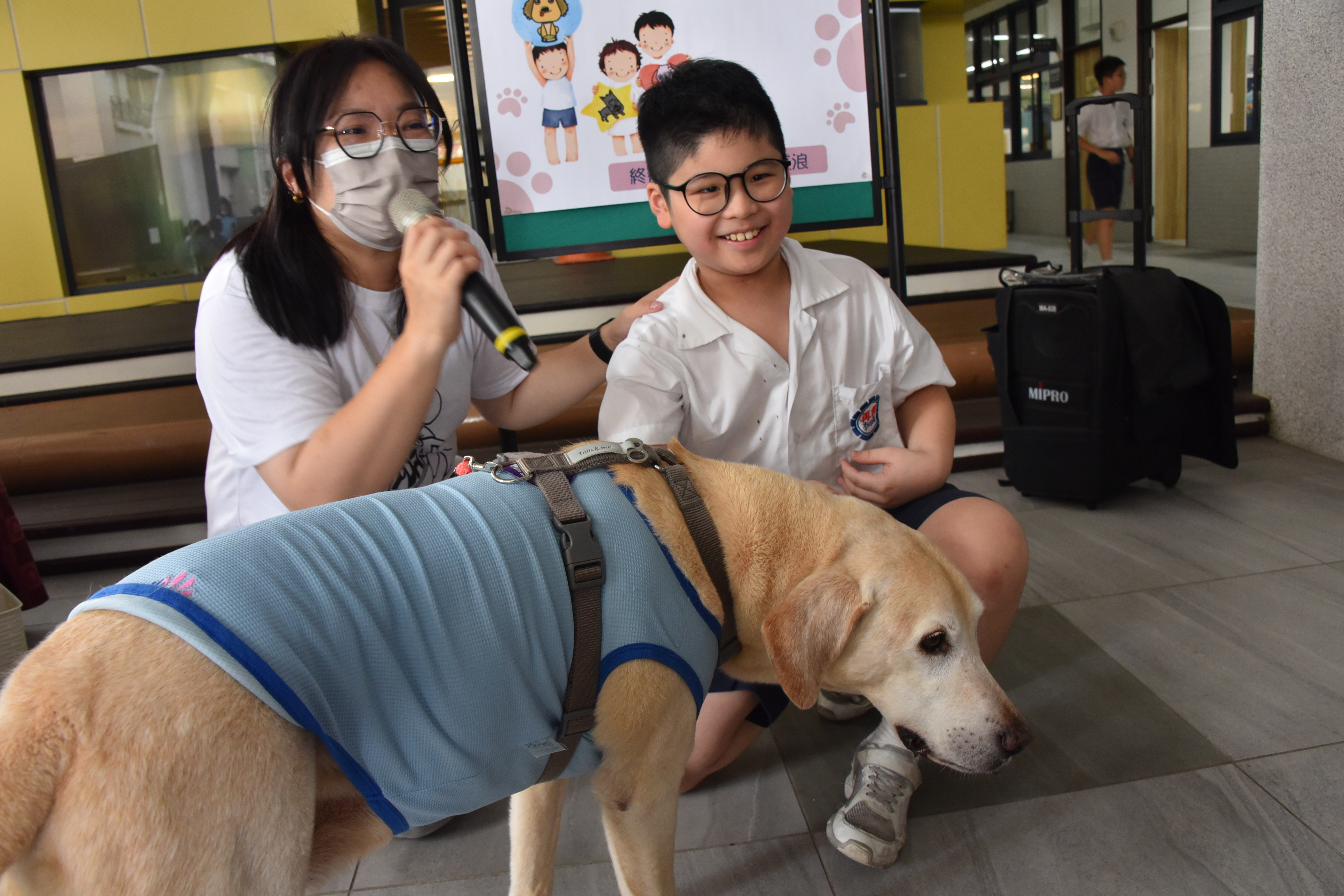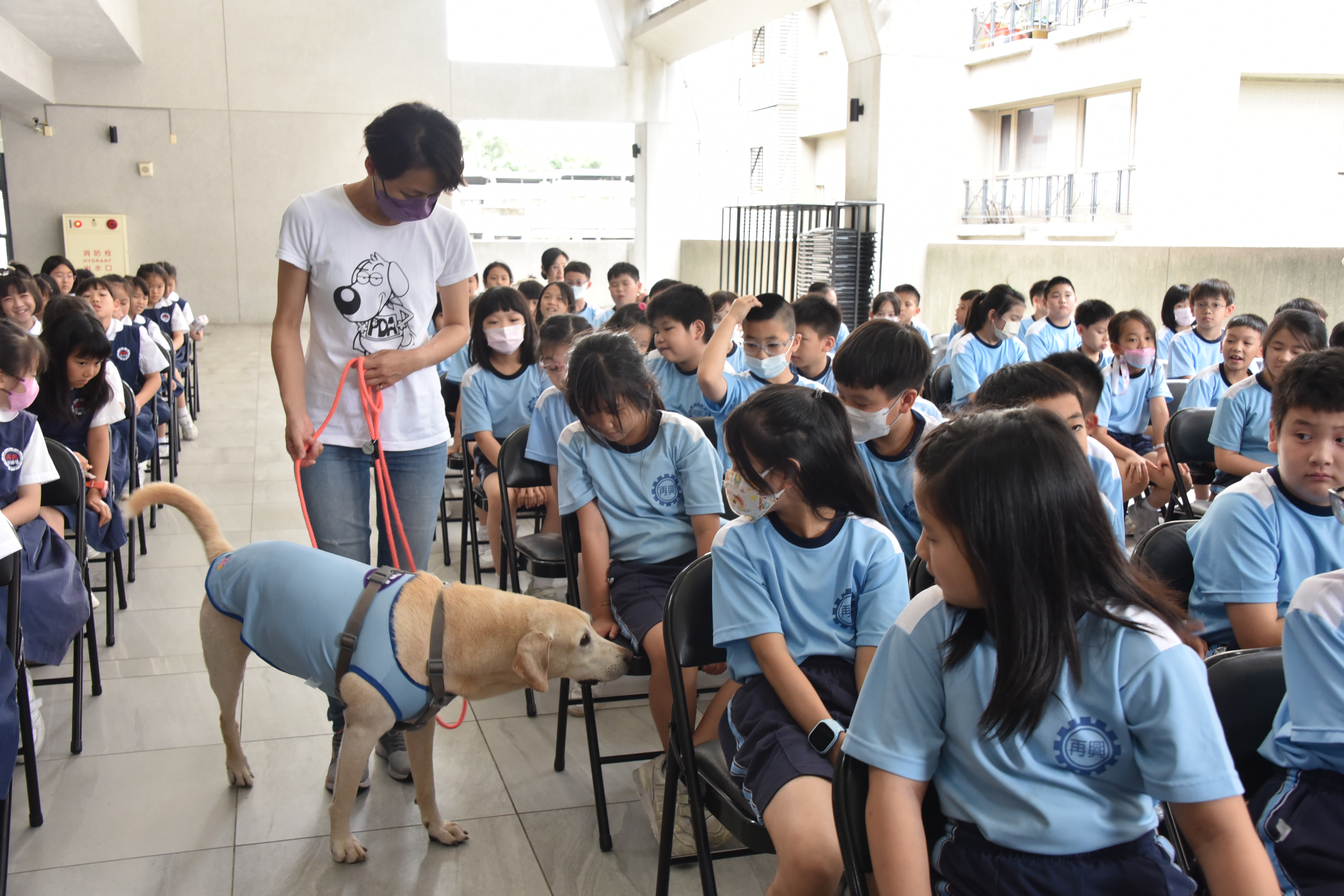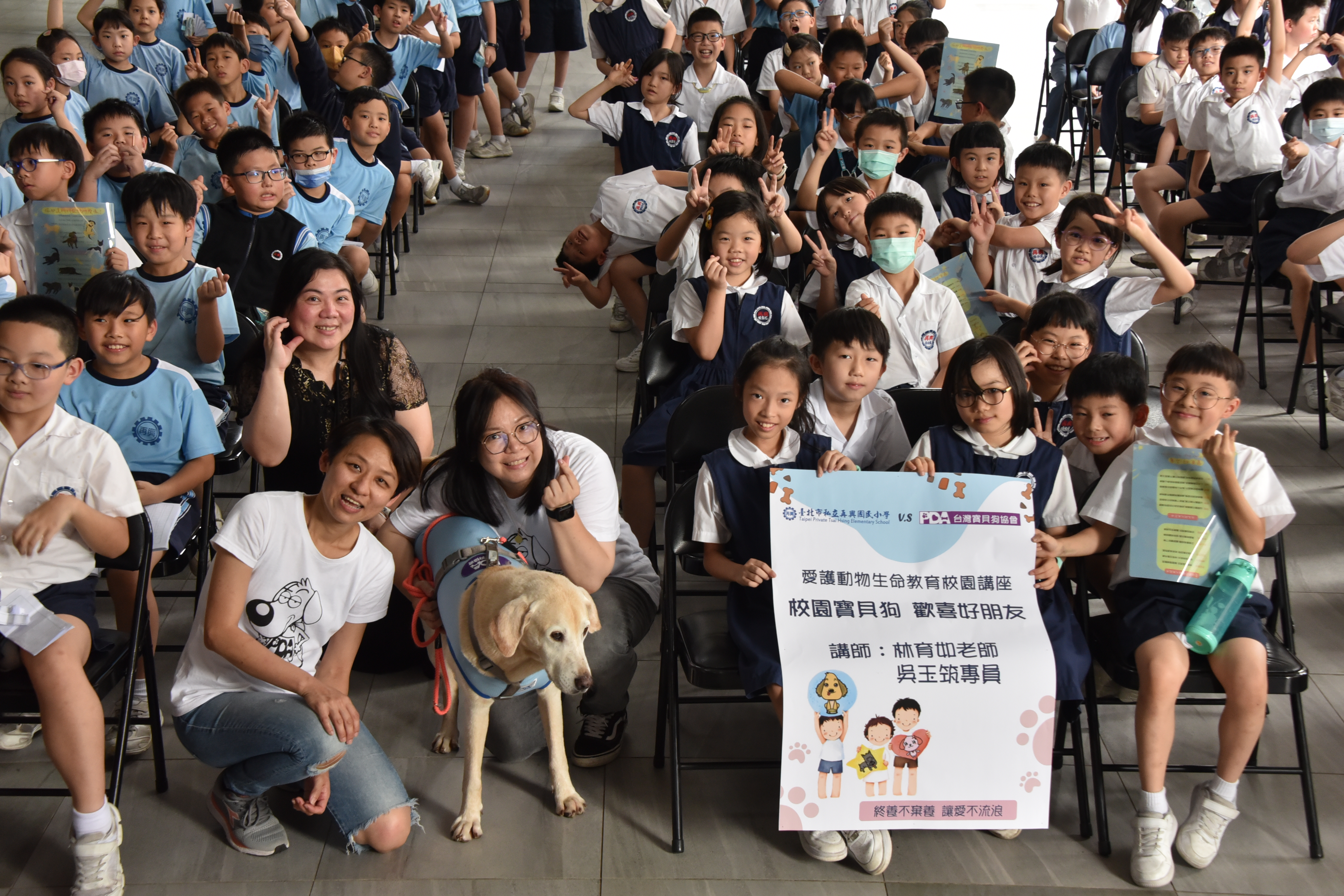 6月11日學校邀請到台灣寶貝狗協會林育如講師、吳玉筑專員,蒞校進行愛護動物生命教育校園講座,主題為「校園寶貝狗 歡喜好朋友」。這次的活動包含與犬隻安全互動的正確方式、「領養不棄養 新店動物之家」影片觀賞、良好互動示範、讓學童體驗近距離接觸及有獎徵答等,讓小朋友學會如何與狗安全互動、了解飼養寵物的正確觀念,並建立尊重生命的價值觀。 |