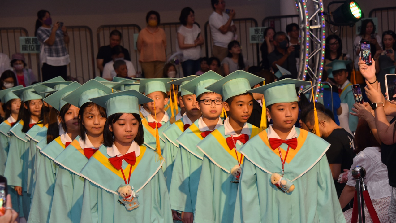 典禮一開始,校長邀請來賓頒發市長獎、議長獎、校長獎、家長會長獎等獎項。最後由校長宣讀畢業證書,畢業班導師唱名全體畢業生上台與校長合影,感動溫馨的畫面讓全場家長歡呼鼓掌。典禮中安排了在校生的祝福及畢業生的致謝詞,還有畢業生感謝家長、老師的叮嚀、勉勵及祝福。
