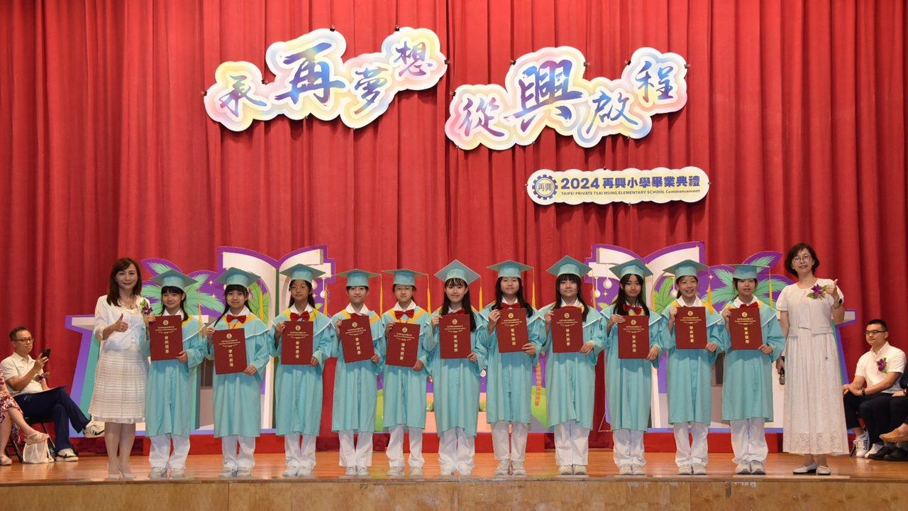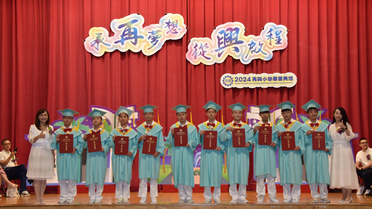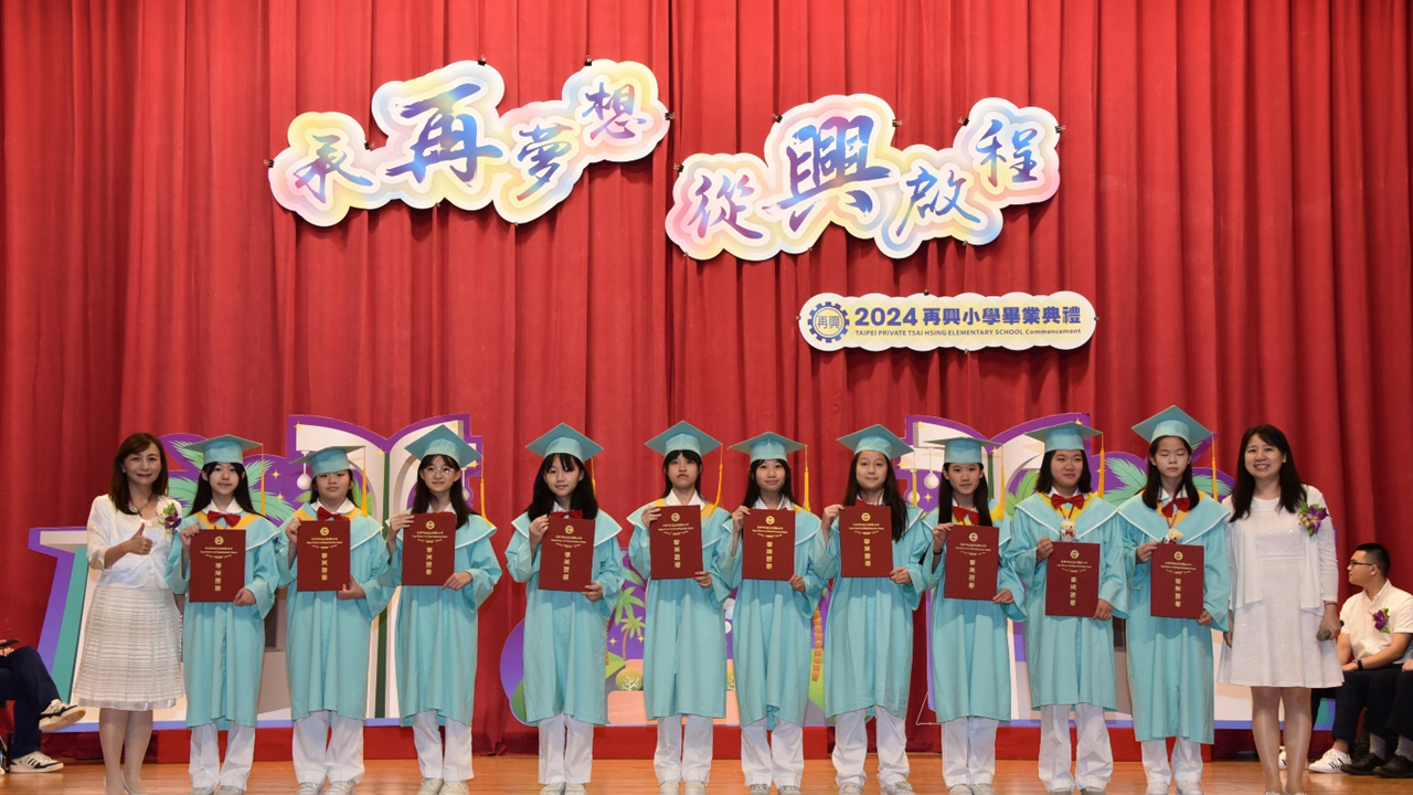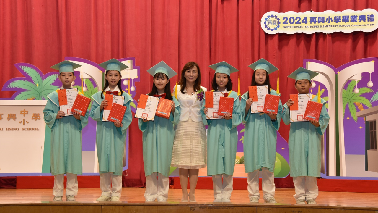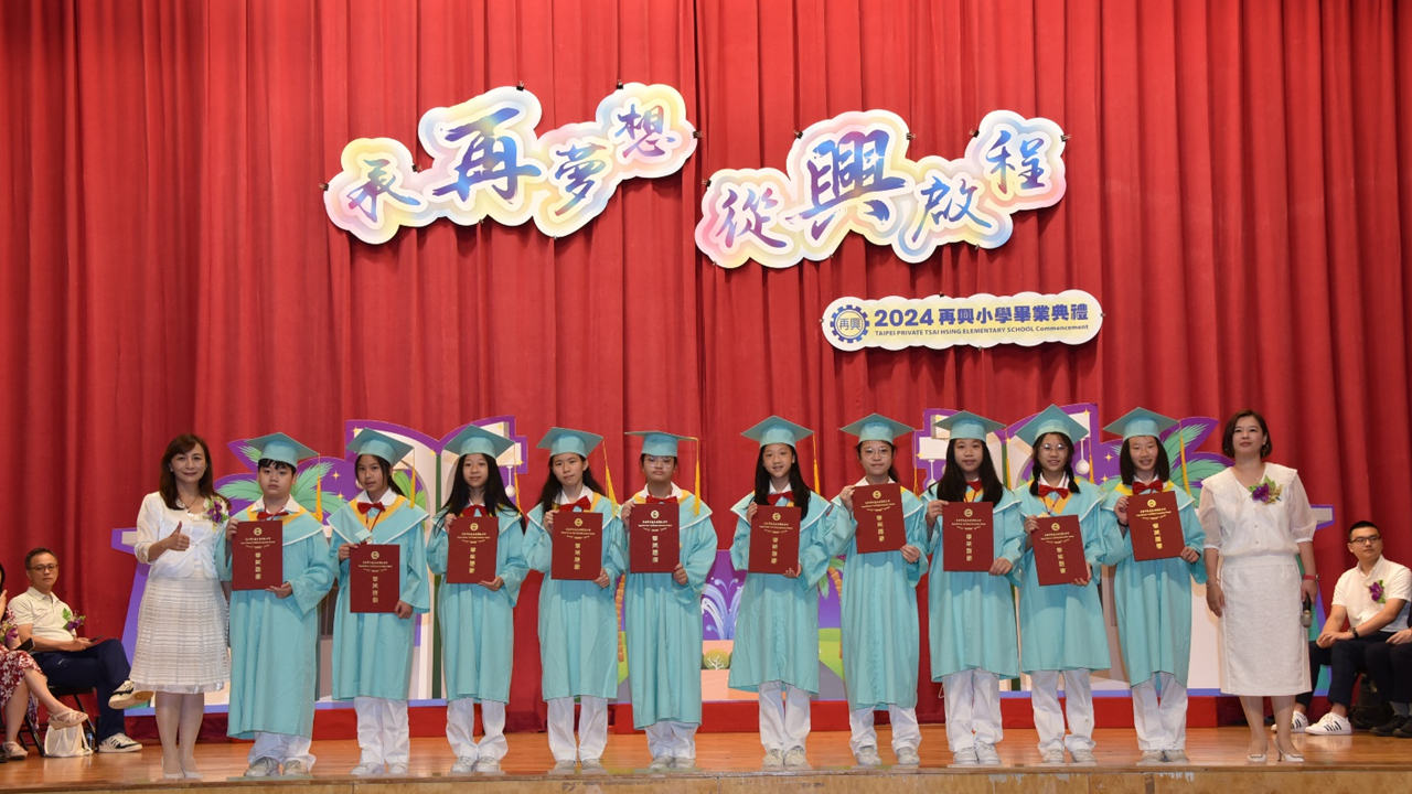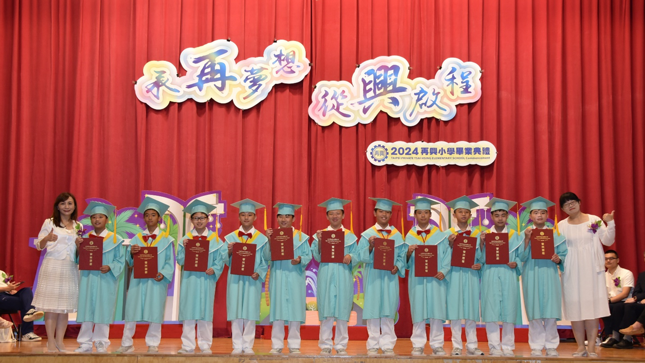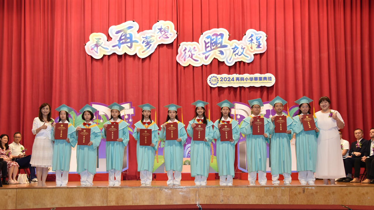 楊珩校長致詞時首先提到:記得6年前手握肥肥軟軟的小手一下子就要變成中學的青少年,在烈日當頭的田徑場、風雨無阻的高爾夫球場、還有各類語文競賽、科學競賽、合唱比賽、藝術展演……都拿到了臺北市、全國賽、甚至世界舞台上優異表現,再興的孩子,是全人、全方位的發展! 校長今天要送給全體畢業生3個勉勵與期許:第一個期許所有的畢業生:對學習要永遠保持熱情!透過認真的學習、探索、閱讀,能快樂生活、品味人生,能讓自己變得更好!花若盛開,蝴蝶自來,人若精采,天自安排,請記得我們的約定: 「做一個更好的自己!」第二個期許是,能感謝失敗、敬畏成功!挫折是讓自己看到不足,感謝每一次的挫折失敗,讓自己能更彈性、更有韌性來迎接挑戰!認真看待每一次成功,不要因為成功而停滯不前!而是更積極向前邁進!未來當你在做判斷、做選擇的時候,請記得再興的校訓,創辦人朱秀榮校長給所有學子的訓勉:誠愛勤勇做為核心價值。第三個期許是常懷感恩的心,感謝家人感謝老師送給你最有價值的禮物~在再興小學人格教育、優質教育的養成;珍惜並堅持你們在再興所建立的友誼,這些將成為未來人生重要的資產。未來在做選擇時心裡才會有核心價值 像是我們的校訓誠愛勤勇 同時你也要感謝同學 珍惜得來不易的友誼。 Class 2024,Today’s Commencement marks the end of your elementary journey at Tsai Hsing, and the beginning of the new one. 如同畢業主題:承再夢想,從興起程!祝福各位同學:前程似錦,成為再興永遠的驕傲! 家長會長林盟翔先生致詞:今天很榮幸以家長會長的身份以及各位的學長來跟各位聊聊3個我們未來可能要去做的事情方向,第一請保持感恩的心,遵循誠愛勤勇的校訓;第二不斷探索找到屬於你自己的路,互助合作,創造獨特的未來性;第三永遠不要放棄自己的價值,再興師長隨時都是各位的依靠! 畢業學長楊承勳致詞:首先,恭喜大家順利完成在再興小學的六年學業。七年前,我也曾穿著畢業服,像你們一樣站在這個大禮堂中央,懷抱著對未來的憧憬和不安,掙扎於畢業的喜悅與離別的感傷。我想與大家分享一個小故事。四年級的我在學校的書展買了我第一本關於物理的書,那是一本關於介紹強子對撞機以及粒子物理的書,從那時開始在老師的指導下我開始了我探索未知的旅程,學校見證了了我的夢想和追逐的道路。最後,我想以五年級時致詞祝福畢業學長姐的心情,來祝福你們。願你們未來的日子充滿勇氣與希望,珍重再見,鵬程萬里! 張明偉董事致詞:祝賀六年級畢業生們並勉勵他們迎接即將到來的中學生活。他強調在中學階段,學生們將承擔更多責任,同時也享有更多自由。鼓勵學生利用這段時間探索新事物,挑戰自我,找到自己的熱情。Travis Moyer也建議學生們既要動腦思考,也要聽從內心的聲音。最後祝福學生們度過一個愉快的暑假,並期待學生在新學年中取得優異的成績。 耿葳議員學姐致詞:學姐又回來母校了,今天只有一件事情很簡單,想要跟學弟妹講。你們的努力絕對不會背叛你們,你要永遠的愛自己,愛自己的家人,那這個世界真的非常的混亂,還有很多的資訊,我希望你們也有獨立思考的能力。然後還有always be kind,也要對自己的朋友還有自己的同學都要很善良。祝福大家畢業快樂,一切順心! 李柏毅議員致詞:各位優秀的畢業生們,祝福大家希望越大,你就能飛得越高。今天是一個結束,也是一個全新的開始,享受未來的人生,享受未來所有的一切,把握美好,相信今天你們以再興為榮,未來再興會更以你為榮! 許裕陞督學致詞:今天我要代表市政府及教育局,帶給再興小學最大的支持跟鼓勵。再興的小孩每個都優秀又非常認真,期許大家從創新出發,從愛心出發。祝福每位同學展翅高飛,大家畢業快樂。