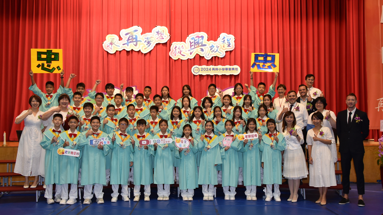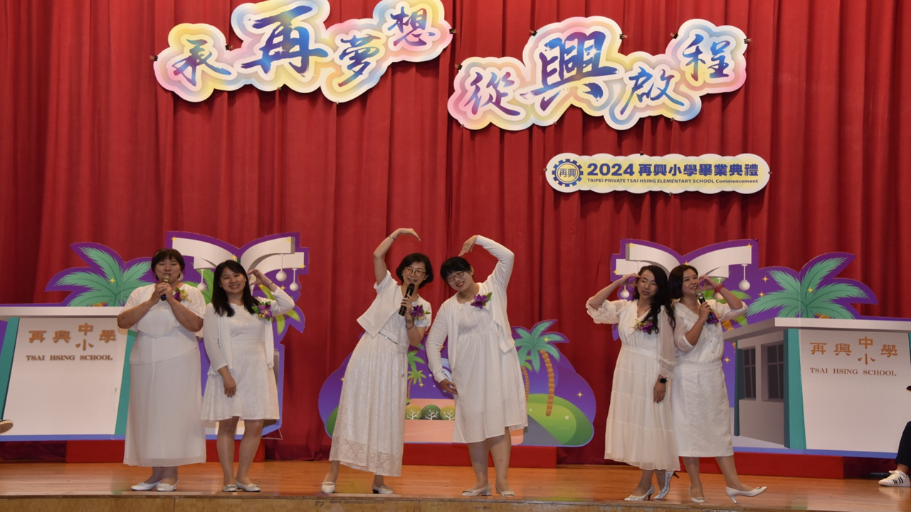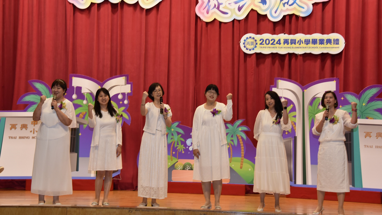 導師們的祝福:今年畢業班導師用歌聲及諄諄教誨聲祝福第66屆畢業生。六年忠班鍾篳藍老師:親愛的六忠孩子,從鍾組長化身為鍾老師,即使身分的轉變,但不變的是我對你們的期許:忠於自己的本心,做一個善良的人,面對未來勇於挑戰、樂在其中,活出盡其在我的風采。六年孝班林雅鳳老師:親愛的六孝孩子,請給老師一個微笑,再把它裝進心裡,帶著快樂的心過生活!當你順利時,開懷大笑很容易,當你遭遇逆境,更要學會笑著面對,用堅強迎接考驗,用樂觀創造幸福,用微笑點亮未來。六年仁班朱乃潔老師:親愛的六仁孩子,請做一個生活中的有情人,用當仁不讓的態度,體會人類和萬物情誼的無價;同時具有寬仁大度的胸懷,放下爭奪計較的苦惱,創造雙贏互惠的世界,成為更好的人。六年愛班馮詠珠老師:六愛的孩子們,希望你們帶著滿滿的愛與祝福,展翅高飛,更希望你們能秉持再興的美好傳統─誠、愛、勤、勇,好好愛自己,努力尊重他人,帶著愛的力量大步向前行。六年信班程秀瑩老師:親愛的六信孩子,別忘了,每天告訴自己:「我真的很棒!」肯定自己,帶著自信勇往直前。在這裡,我們留下光榮的印記,在這裡,老師祝福你們未來的日子更精采!六年義班林佳奇老師:親愛的六義孩子,我心中最棒的天使班,你們的善解人意、你們的聰慧伶俐,必能成為人生路途中的一抹亮點。有一點挫折沒關係,有一點荊棘沒關係,我們為夢想義起努力。