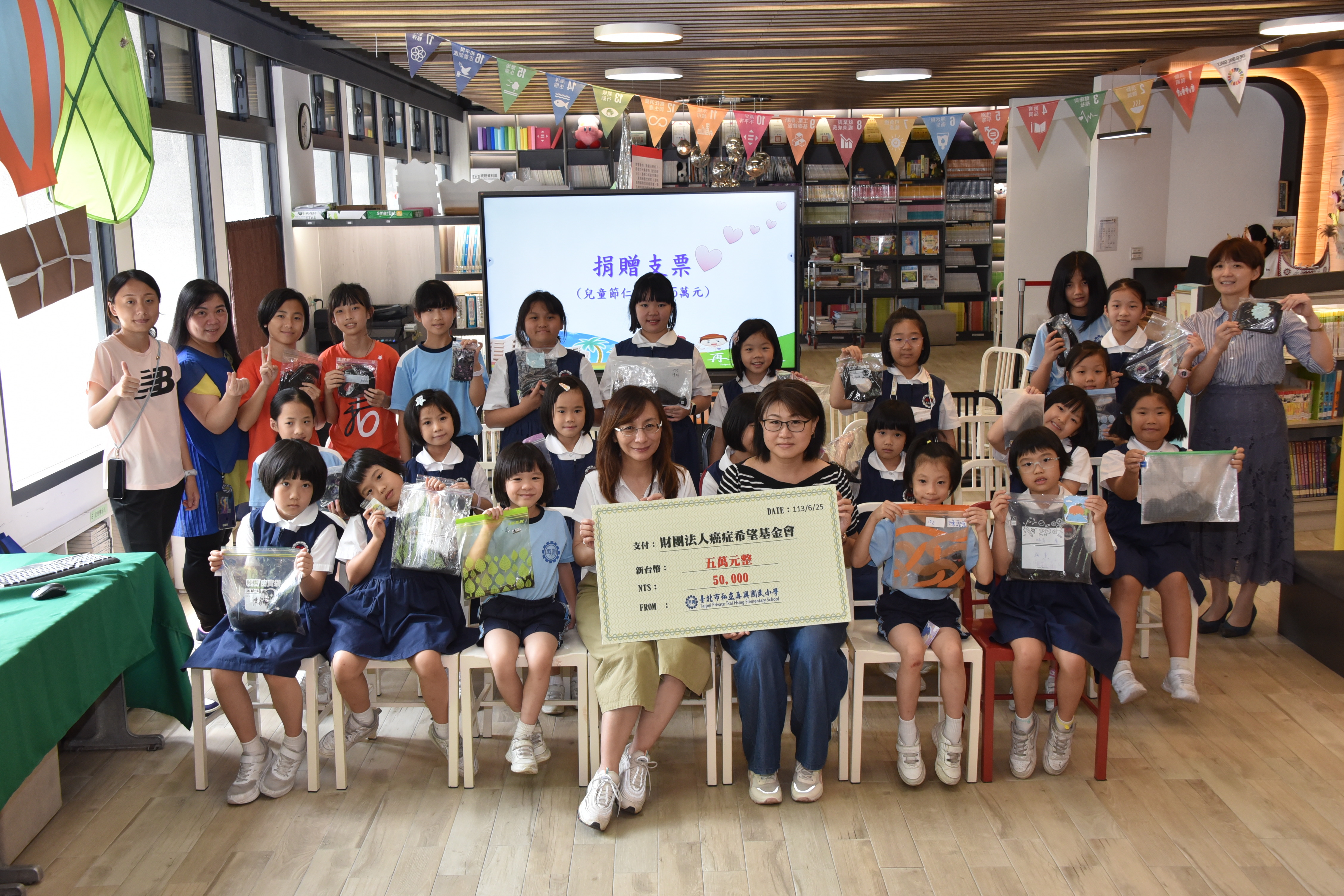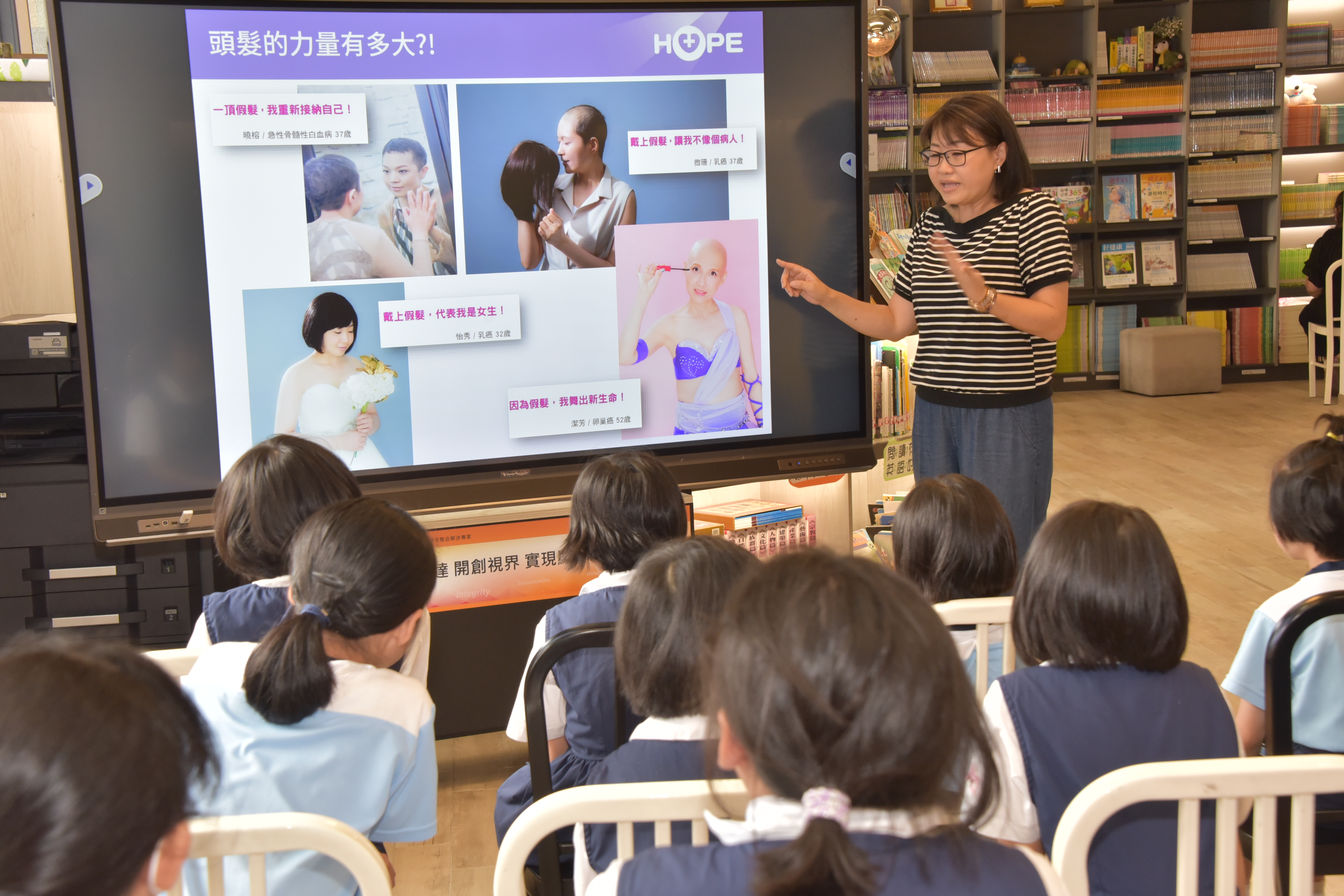 活動中,癌症希望基金會病友服務部張瓊文主任透過深入淺出的方式說明,讓孩子了解假髮製作的過程,以及假髮為病友帶來的信心效益;另外,亦播放了彙整孩子剪髮過程及家長對孩子此懿行之感受的影片,影片中家長紛紛回饋希望孩子們能藉由此活動培養出同理心,盡可能去幫助別人,並將這種助人的喜悅記在心裡,將來用各種方式延續下去。接著進行捐贈儀式,再興小學慣例從今年兒童節仁愛捐款中撥出5萬元,捐贈癌症希望基金會專款製作假髮,期許再興學子延續創校以來行善分享愛的理念,將這份愛傳遞下去。最後大家合影留念,記錄下這場特別洋溢著「愛」與「希望」的捐髮活動。 |