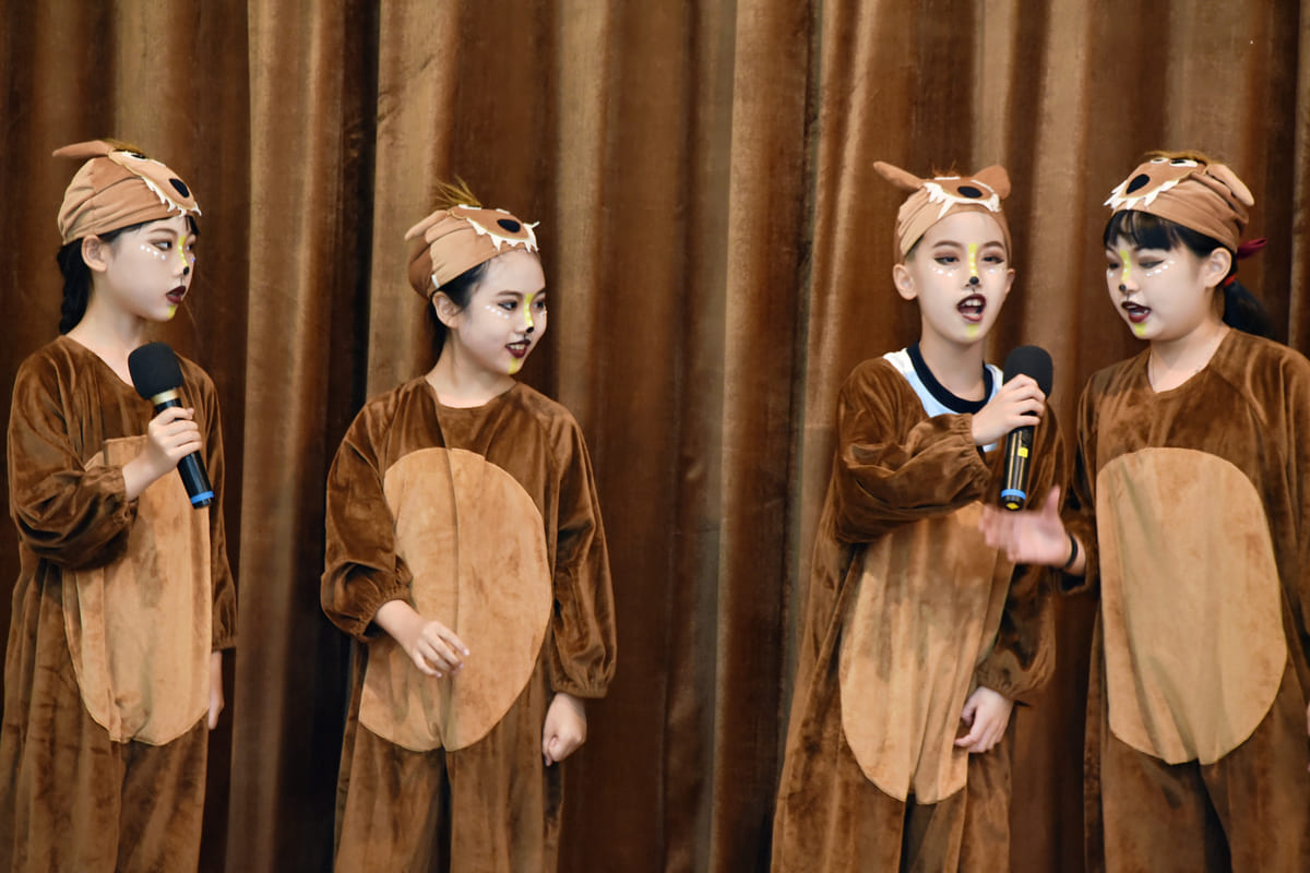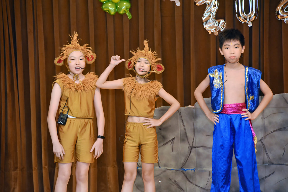 我們不是專業演員,但我們有對故事角色的熱誠。我們不是聲樂家,但我們能夠享受音韻變化的美感。這一學年以來,由喜好戲劇的Tr.Joshua帶領著孩子們演練,具美術專長的Tr. Nate指導製作道具,而對文學高感度的Tr. Patrick指導學生們的文字表達。