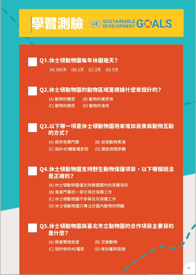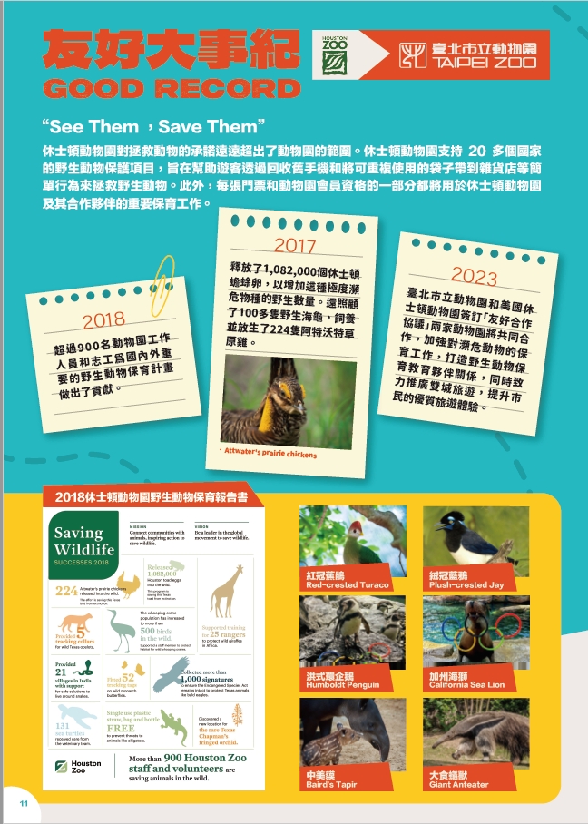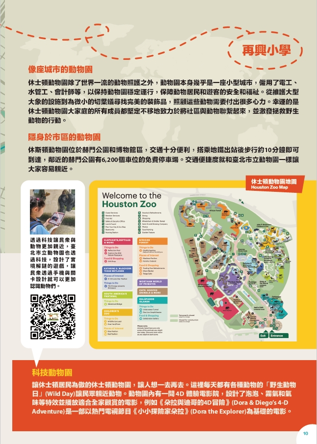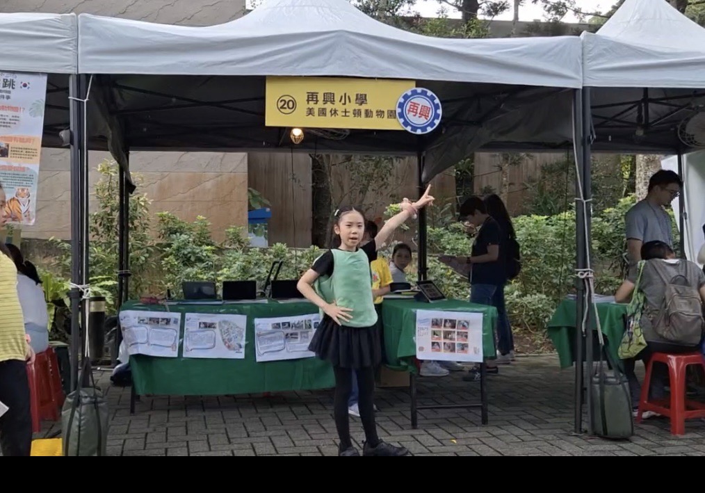 我們將此精神轉化為教學設計與活動,培訓了熱愛動物的三、四年級學生擔任園慶教育市集的設攤小關主,於10月26日在臺北市立動物園110周年教育市集闖關攤位上,以「『興』手童遊休士頓動物園」為題,在九宮格闖關帶領遊客,認識臺北市立動物園和休士頓動物園。
