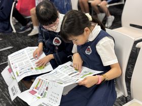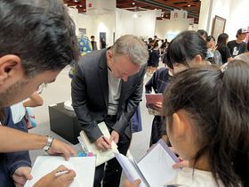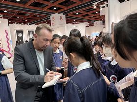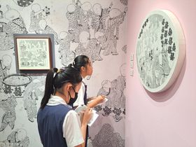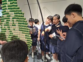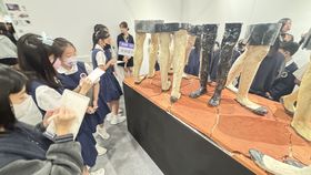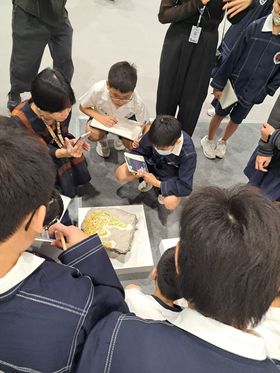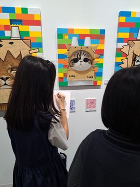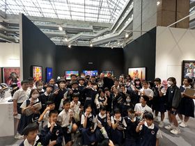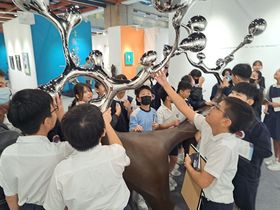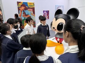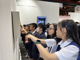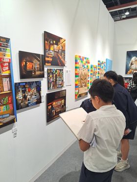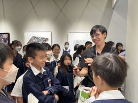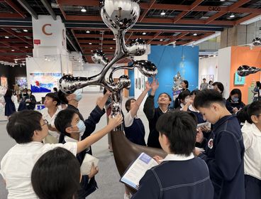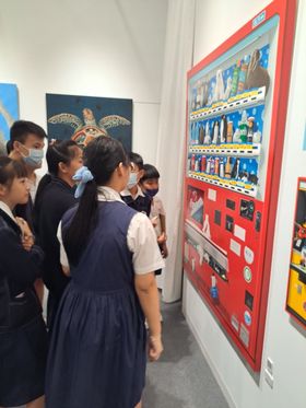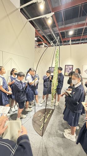 參觀過程中,學生也和作品互動、嘗試現場素描作品做紀錄,還偶遇國際知名藝術家Leo & Steph,二人親切的為學生簽名並邀請學生一同合影留念,讓大家感受到藝術的親和及啟發。