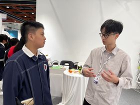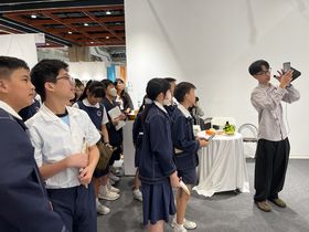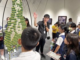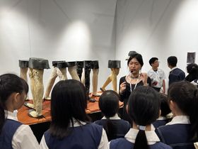 活動伊始,藝博會人員介紹展場規範,隨後學生在導覽員的引導下參觀了「MIT新人推薦特區」和「台灣原住民族藝術特區」。在新人特區,學生接觸了蕭力綺、貳進等八位新銳藝術家創作風格主題迥異的作品,從數位互動、影像裝置到陶藝與混合媒材的創新表現,體驗藝術家對媒材運用的無限可能。學生不僅近距離觀察到不同作品的創作手法,還有機會與藝術家面對面交流,深入了解創作背後的理念和生命經歷,和勇於挑戰各種媒材和技法的可能性,這一學習體驗彌足珍貴。