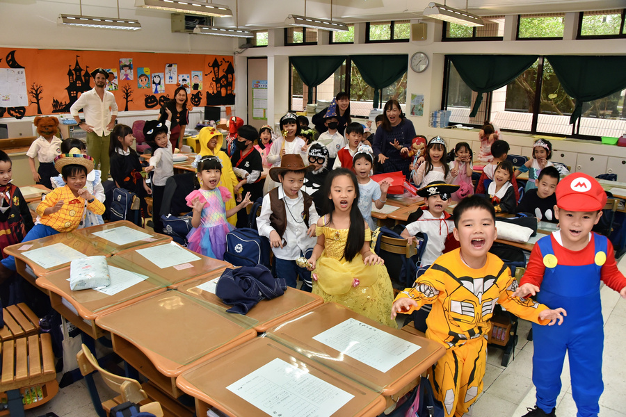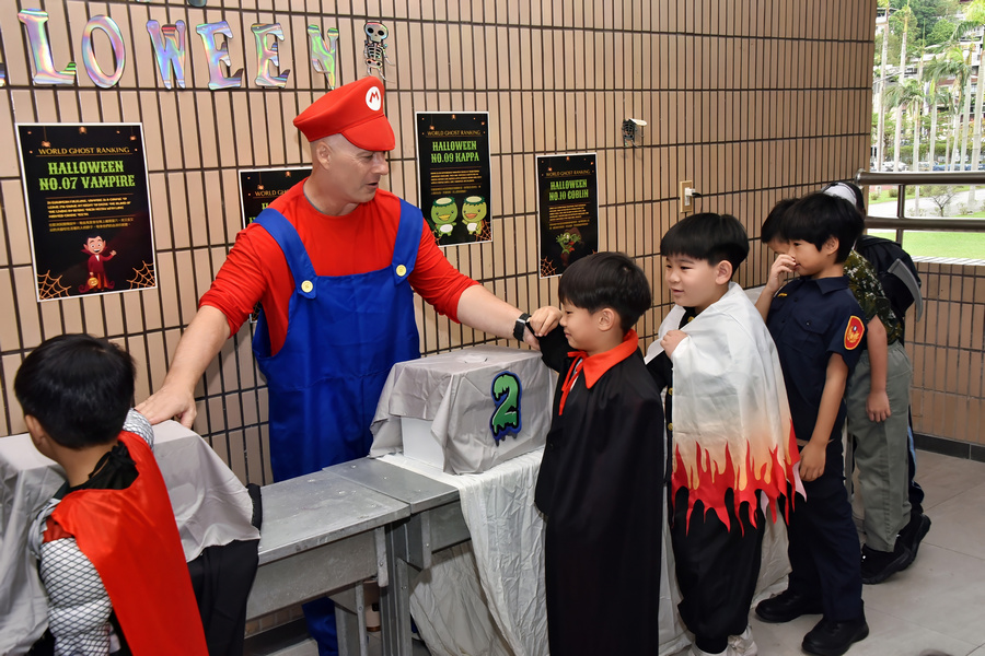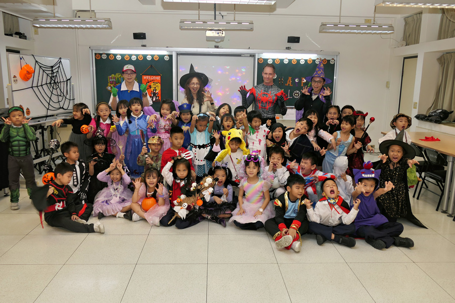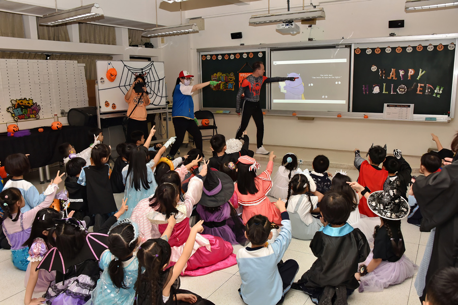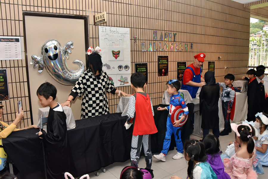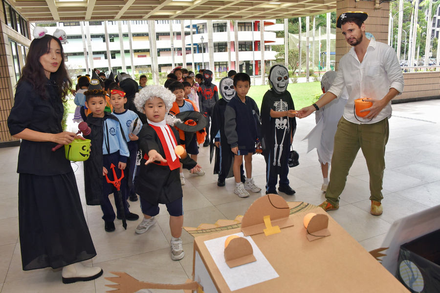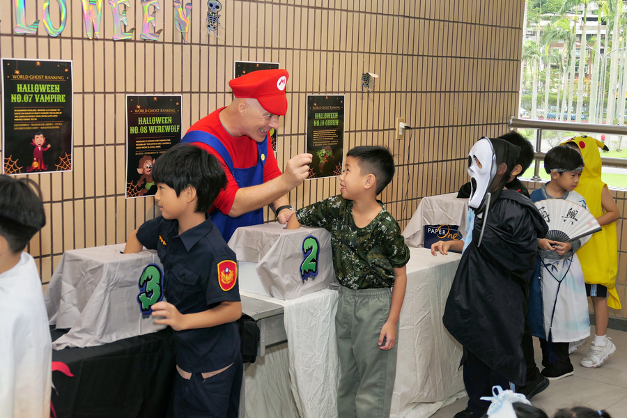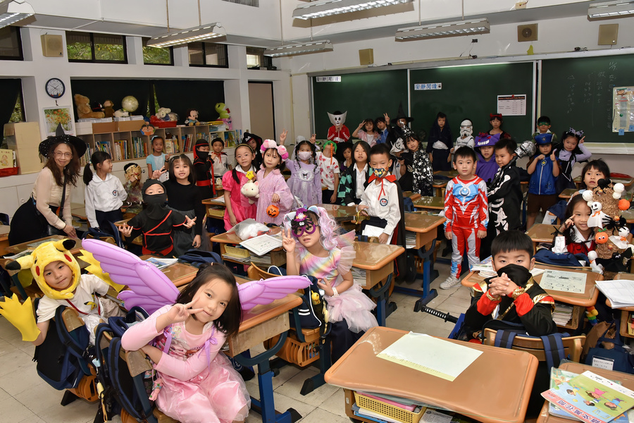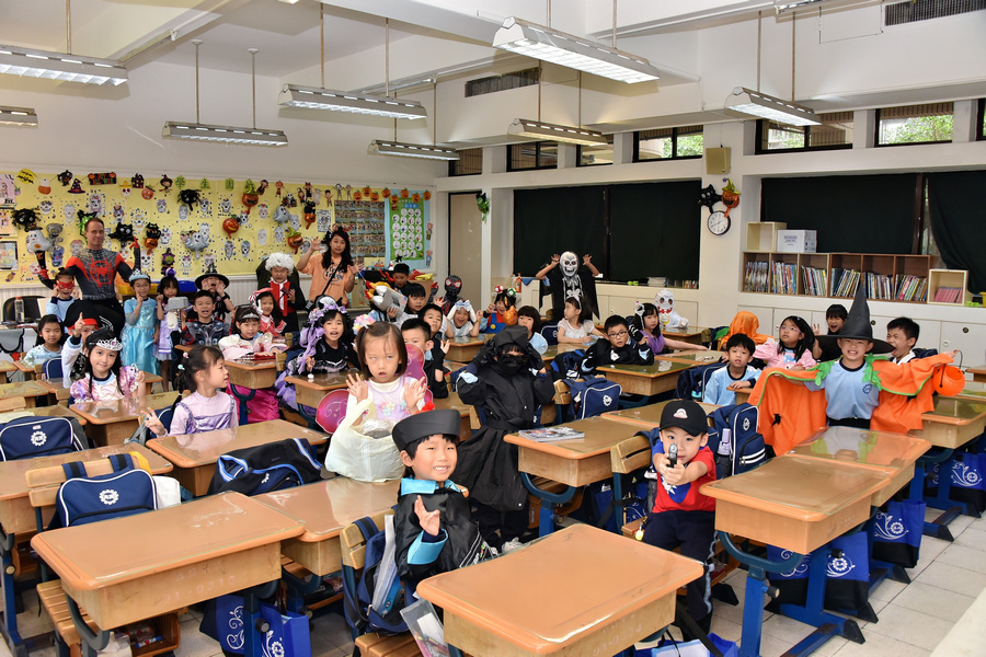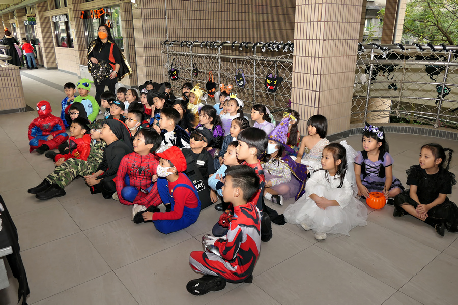 因為這個意外氣旋擾局,我們原訂的英語闖關活動順延一周,但仍以萬聖節為裝扮主題,大家開心穿戴上早已準備好的創意服裝,跟著班級導師的引領前進,準備好要迎接六個關卡的英語挑戰!