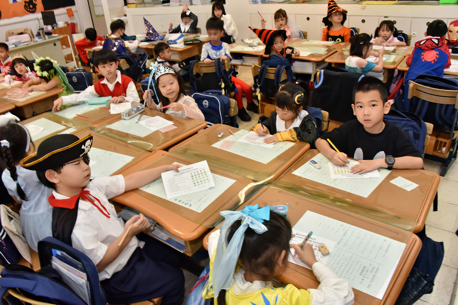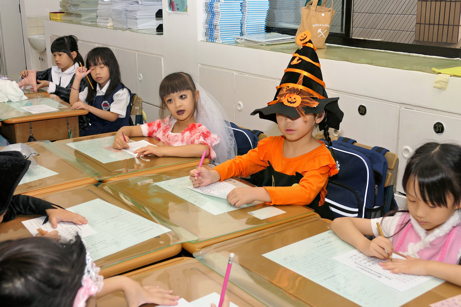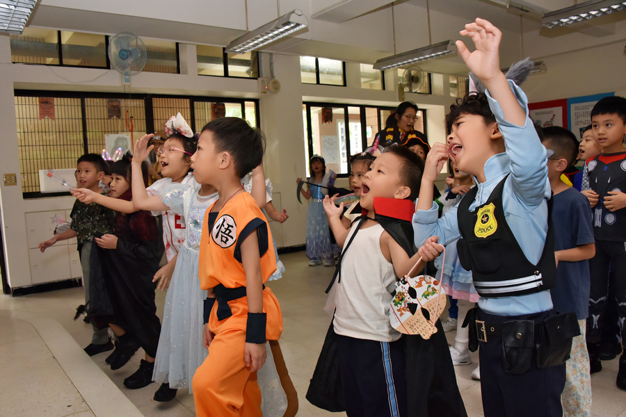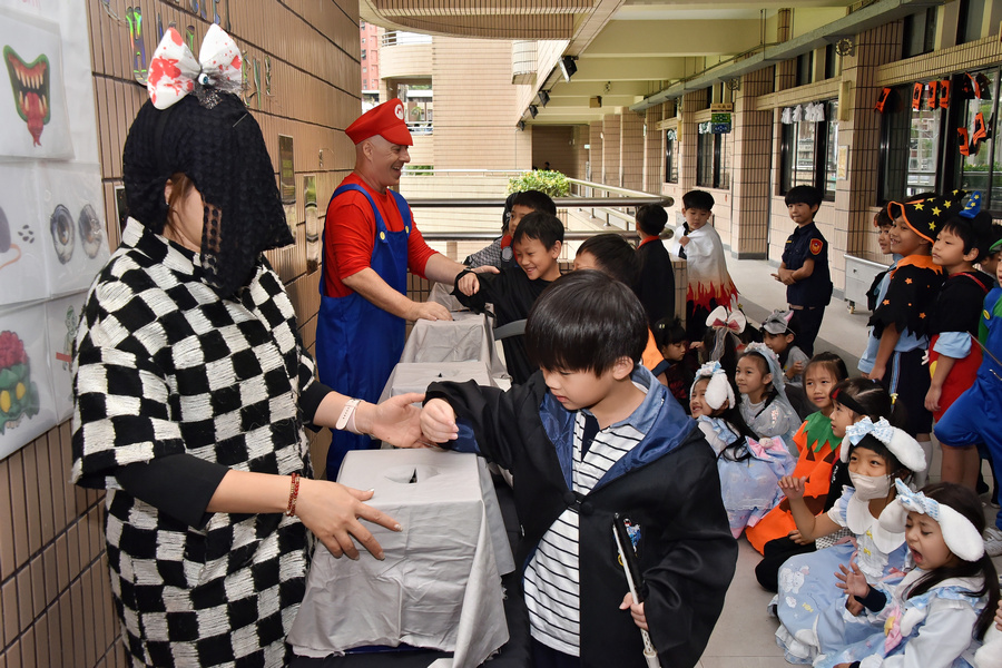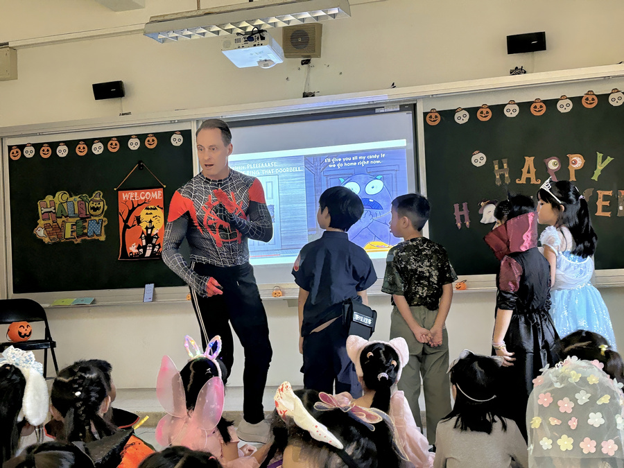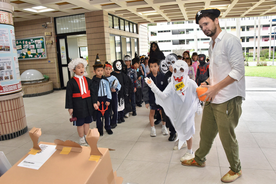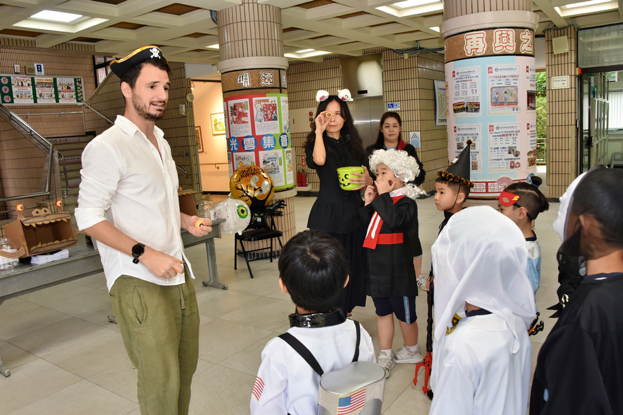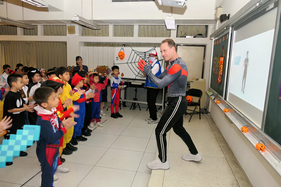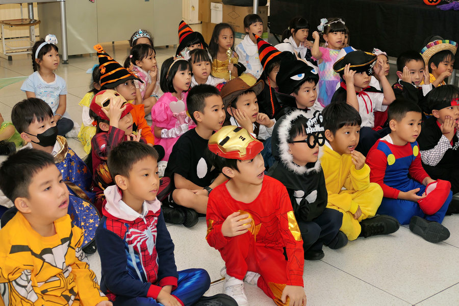 因為這個意外氣旋擾局,我們原訂的英語闖關活動順延一周,但仍以萬聖節為裝扮主題,大家開心穿戴上早已準備好的創意服裝,跟著班級導師的引領前進,準備好要迎接六個關卡的英語挑戰!