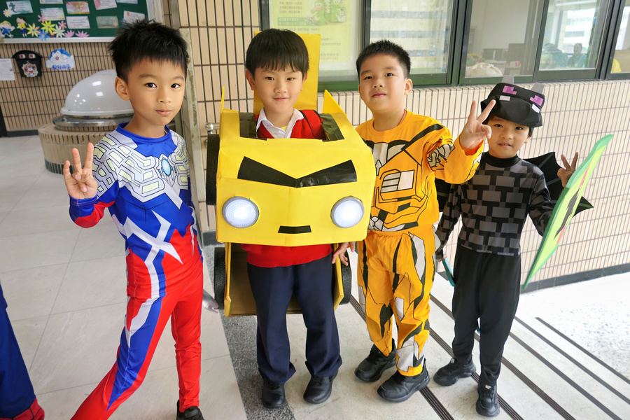 此次活動除了闖關挑戰英語能力,最有趣的就是穿上自己喜歡的服裝,在美麗的校園漫步穿梭。我們看到好多具巧思的裝扮,不僅新奇富有創意,還讓人無法忽視印象深刻。如此特別的展現,當然要拍照留影,Tr.Stella和Tr.Rachel指揮大家擺出最酷的姿勢,為大家留下最美好
