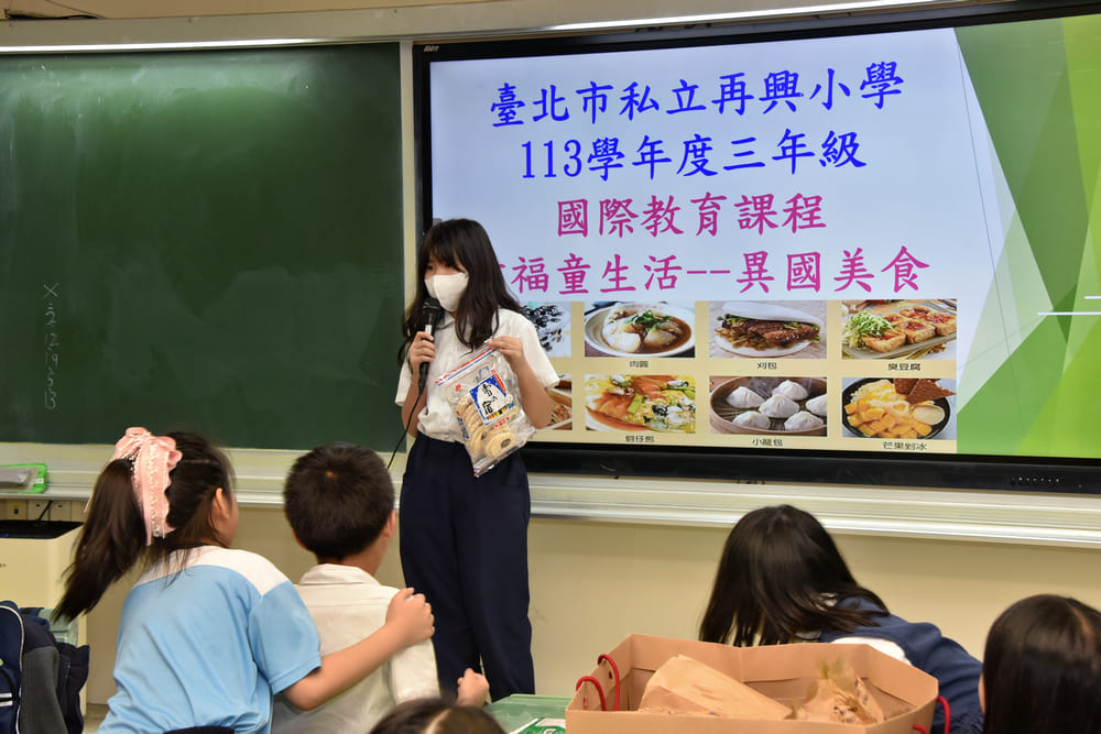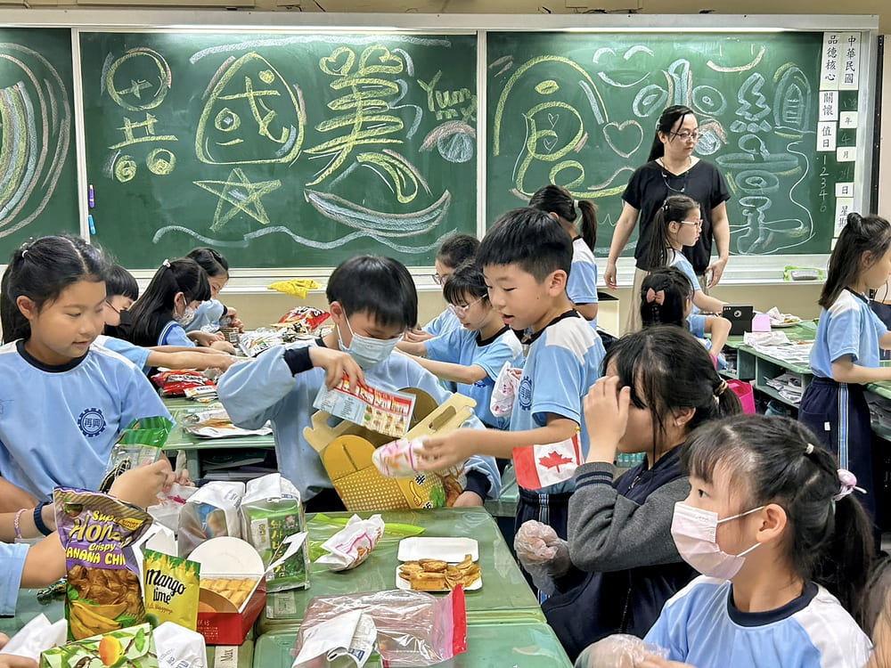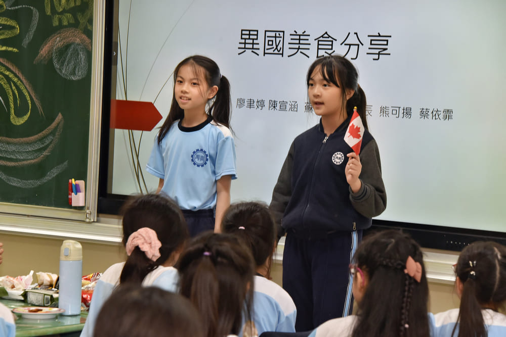 在《吃的東西原來如此》共讀討論,孩子們對食物的製作過程、食材的來源與飲食文化有了初步認識因而學生們輪流擔任美食的導覽小主持人,介紹自己組別的料理與背後的文化故事,展現了孩子們自信又有條理的表達能力。這場異國風味美食宴,不只讓孩子們「吃得開心」,更讓他們「學得有感」。在體驗課程結束後,學生開心的分享:「我發現每個國家吃的東西都不一樣,真的很特別!」同學接著說:「我想跟媽媽說,下次我們家也到異國餐廳品嘗美食看看!」