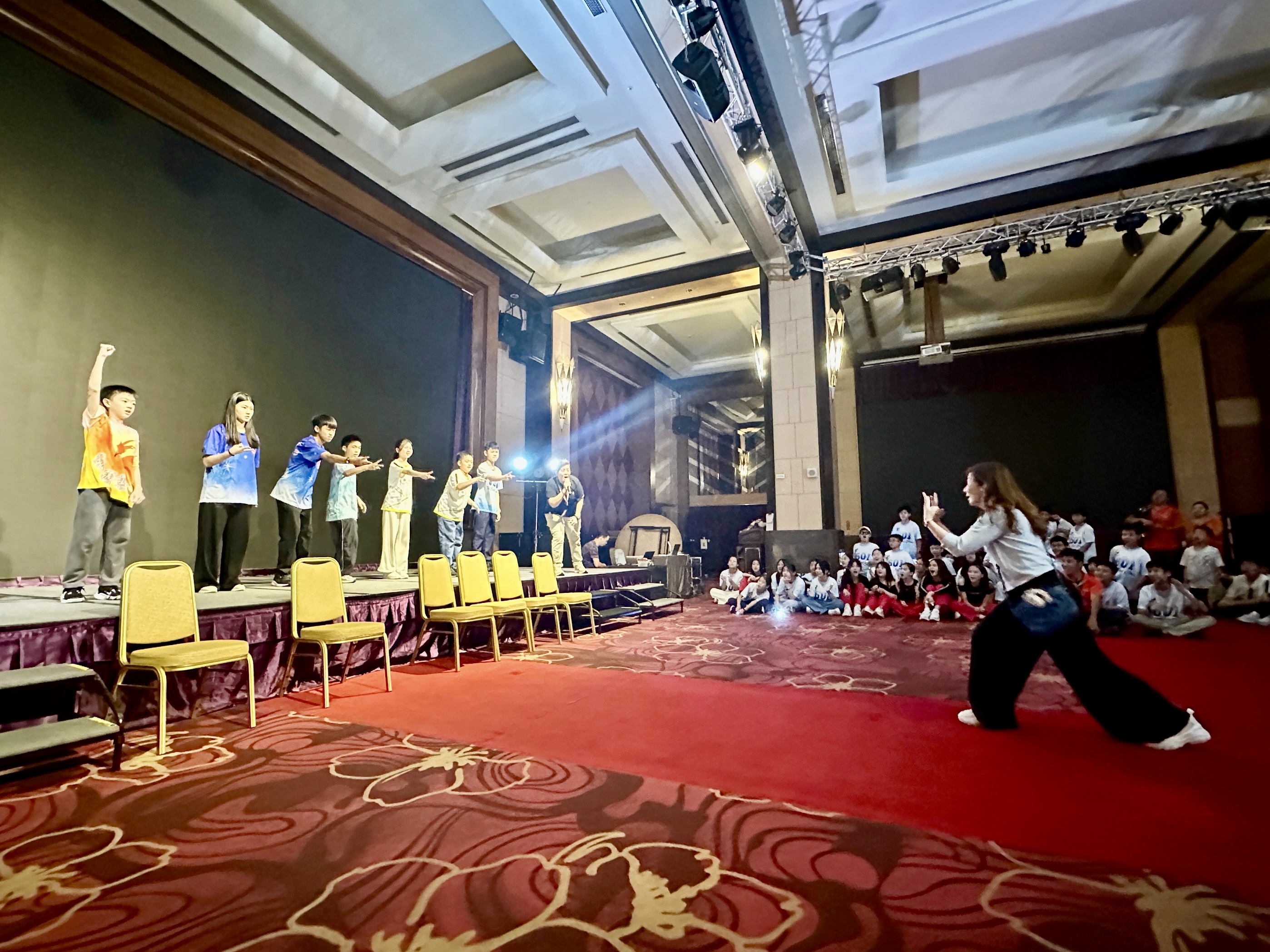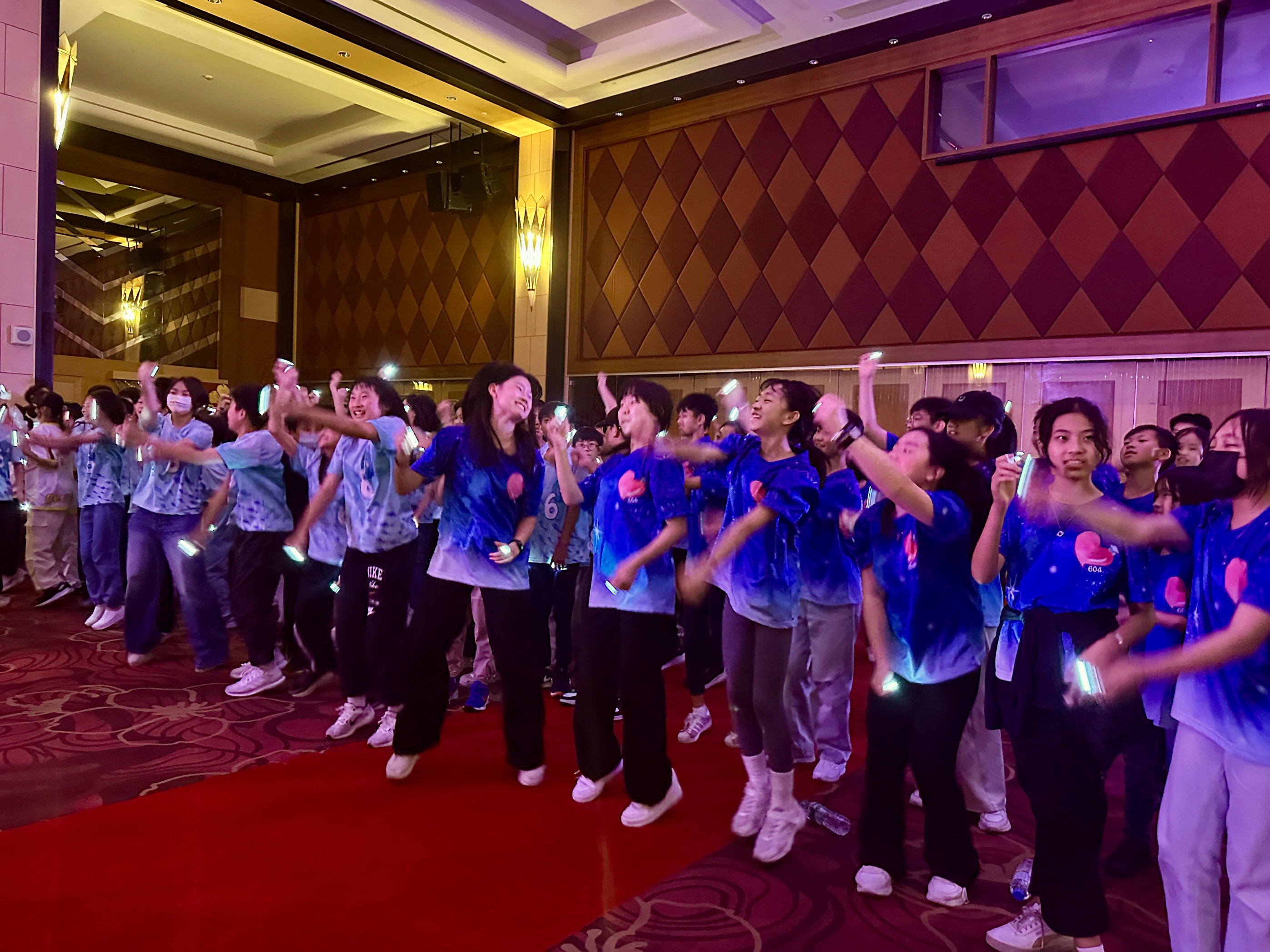 傍晚入住嘉義耐斯王子飯店,享用了豐盛的自助式晚餐後,「青春晚會」正式開始!校長的開場致詞鼓勵大家珍惜此刻、心懷感恩。四組學生輪番上台,賣力表演舞蹈與歌唱,現場氣氛熱烈,掌聲四起。這不僅是他們的表演舞台,更是凝聚友誼、回顧六年成長的珍貴時光。