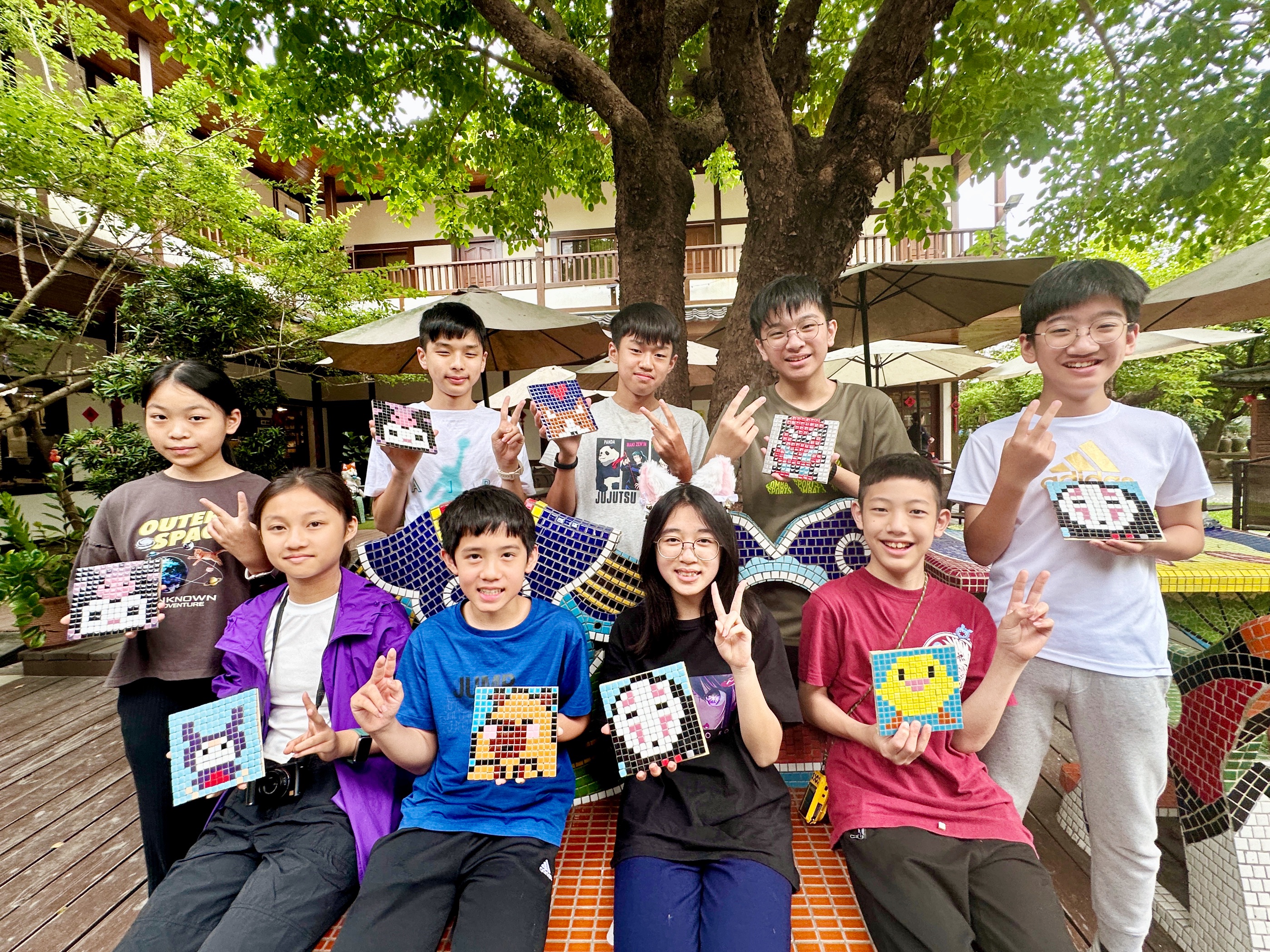 第三天~藝術之旅&漁樂探險&圓滿句點 上午抵達板陶窯工藝園區,在東方園林造景中拍照留念,每位學生都親手體驗馬賽克拼貼DIY,展現細膩巧思;導覽老師則引導大家認識交趾陶與剪黏工藝,讓學生們大開眼界,拓展藝術視野。