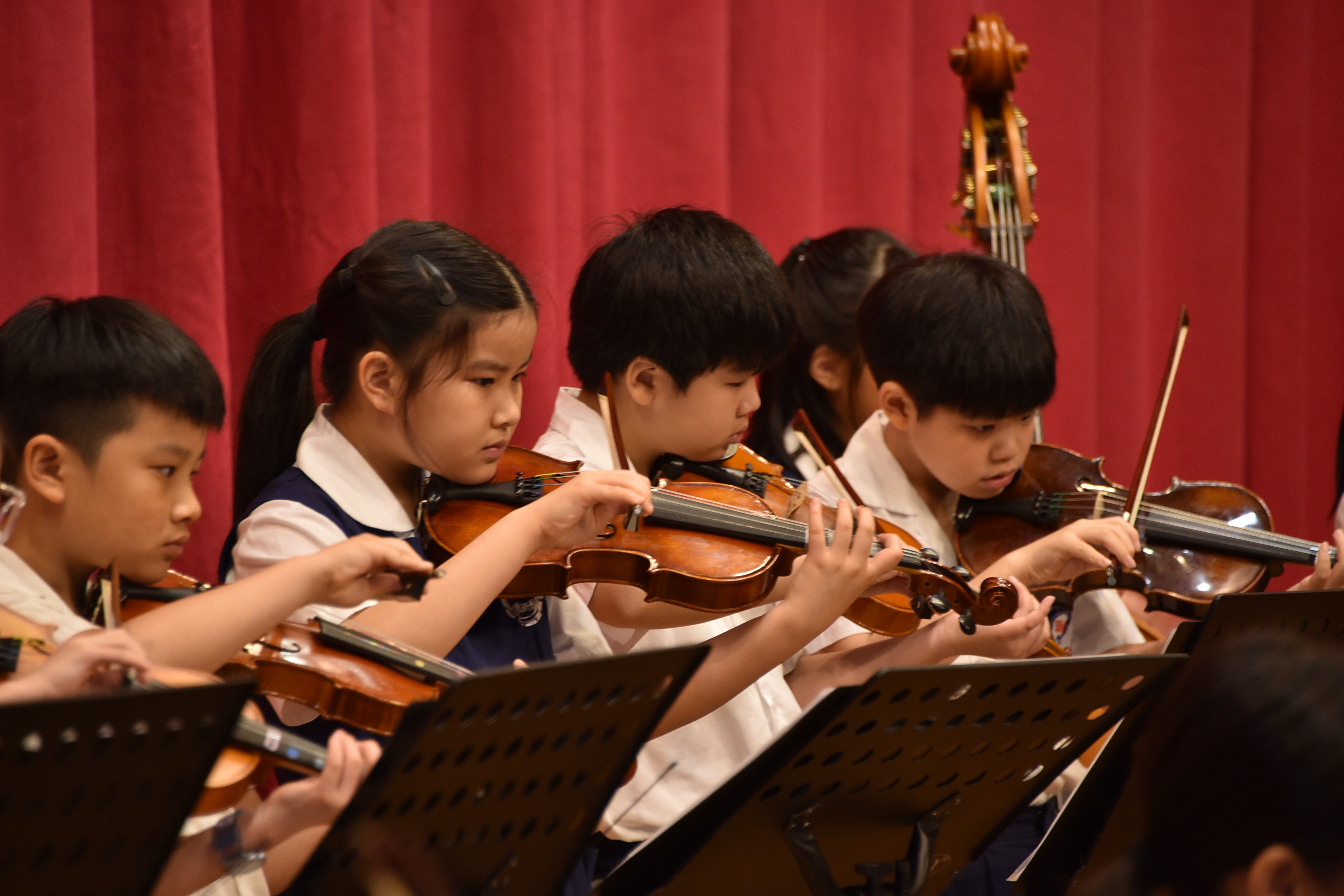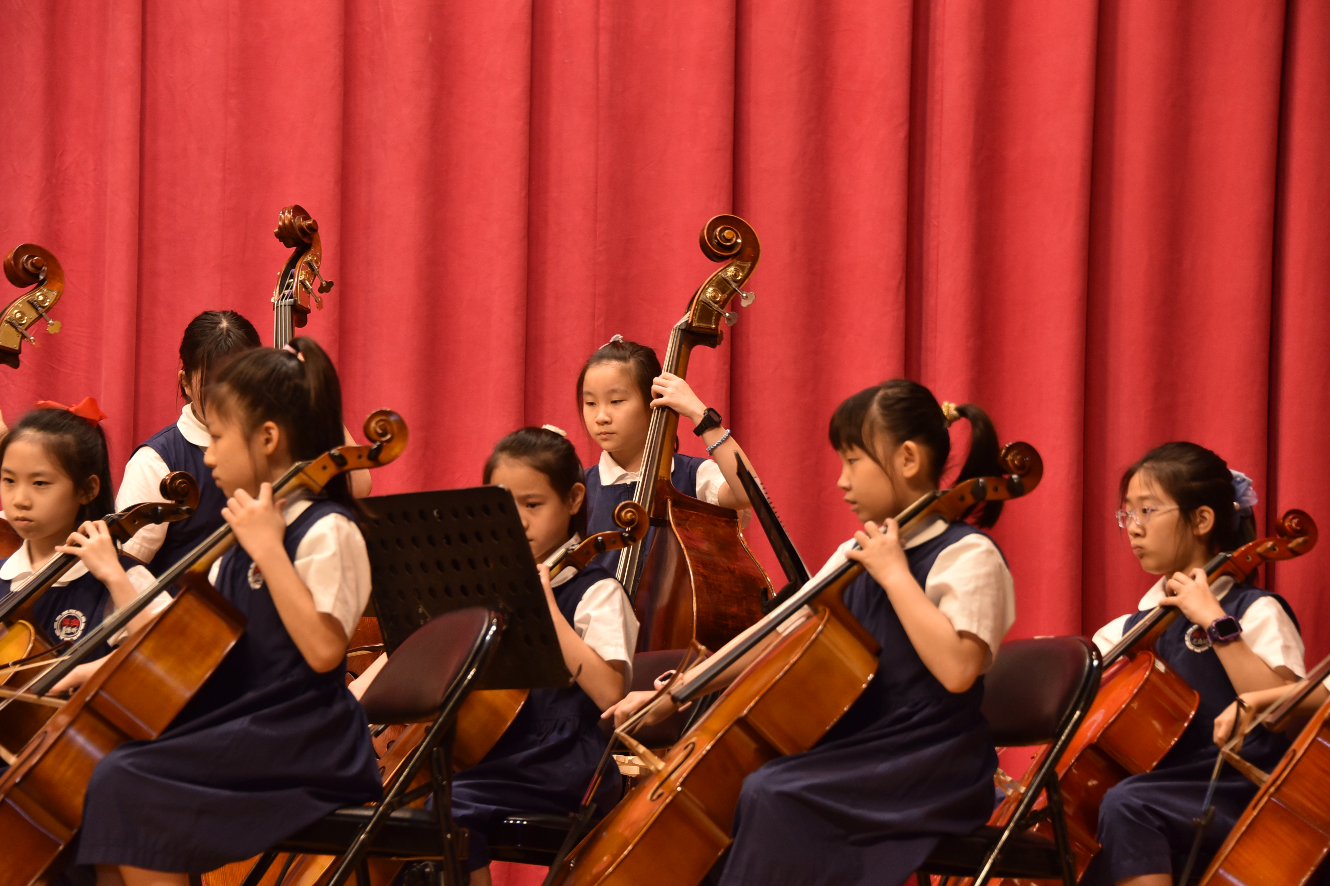 隨後,一連串動態展演正式展開——弦樂團首先以《火焰之舞》和《船夫之歌》點燃全場氣氛。孩子們用琴弓與琴弦訴說著光明與希望的故事,將音樂中的情感細膩傳遞到每一個角落。隨後登場的魔術社,帶來原創作品《音樂魔法狂想曲》,以精湛的手法和豐富的戲劇效果,為現場帶來驚喜與歡笑。 |