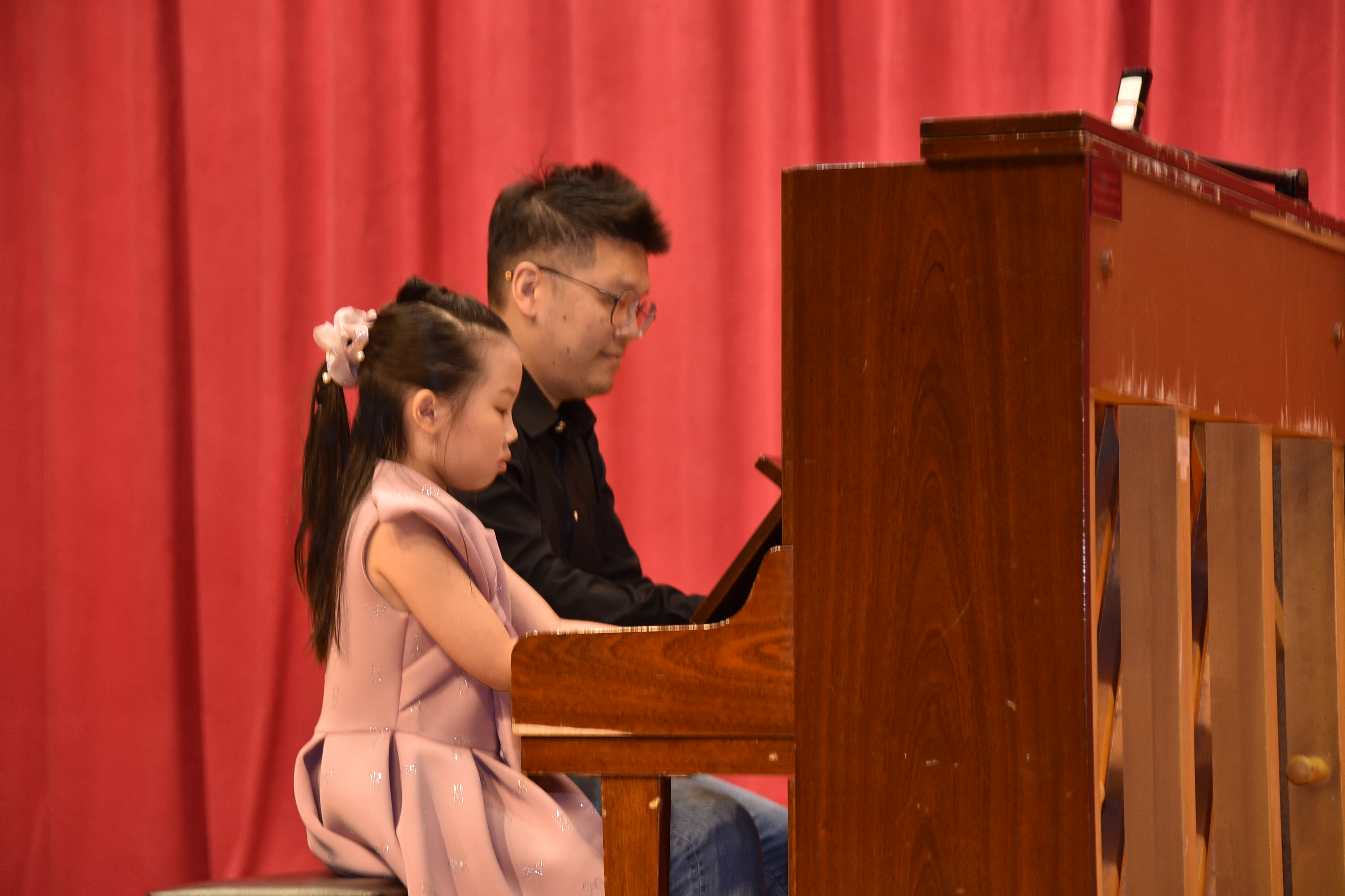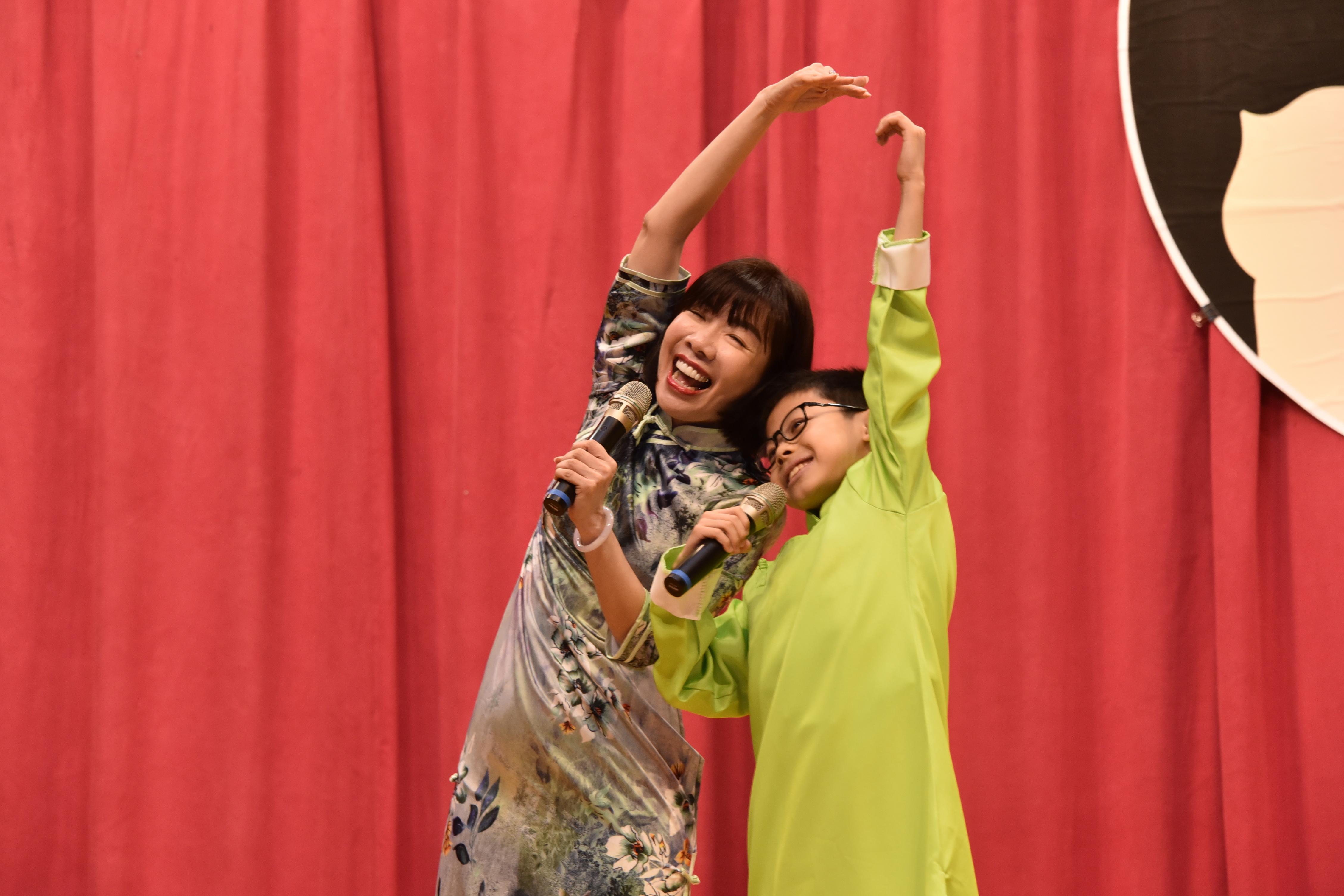親子才藝表演感人至深。羅歆婷同學與爸爸攜手四手聯彈,用琴聲串起父女之間的默契;何適安同學與外婆深情合唱,唱出跨世代的深厚情感。林渝淵、邱暄玲與吳靖姍同學,分別與媽媽合作跳起動感的KPOP舞蹈,展現青春活力與親子間的默契。邱喆威同學更與媽媽、外婆、阿姨及就讀幼兒園中綠班的表妹陳曦合唱《酒矸倘賣嘸》,在舞台上演繹家族間傳承的歌聲,感動全場觀眾。侯冠聿同學和媽媽帶來的母子相聲,以幽默機智贏得歡笑不斷。 |