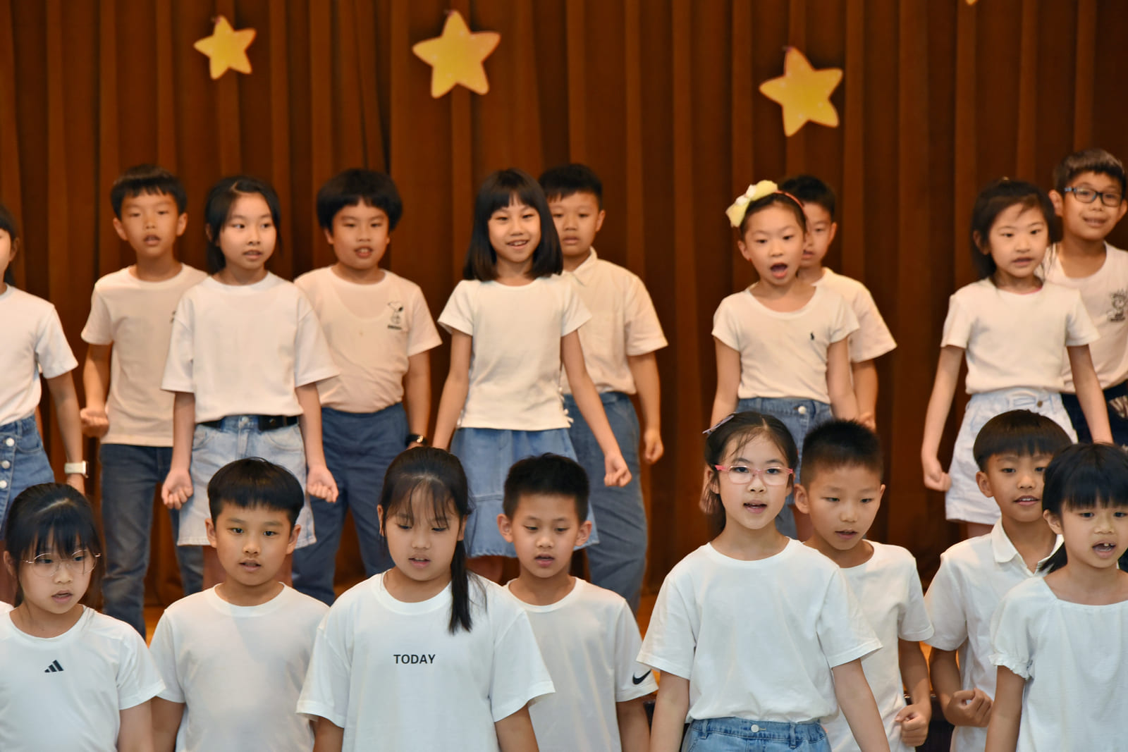 孩子們自信地在台上表演,隨著音樂搖擺舞動,唱出熟到做夢都會的歌詞,還不忘老師叮嚀的動作,認真的表情實在令人感動。台下的家長也不惶多讓,各個聚精會神拿著相機手機,深怕錯過孩子精彩的一刻,臉上滿是關愛與喜悅。