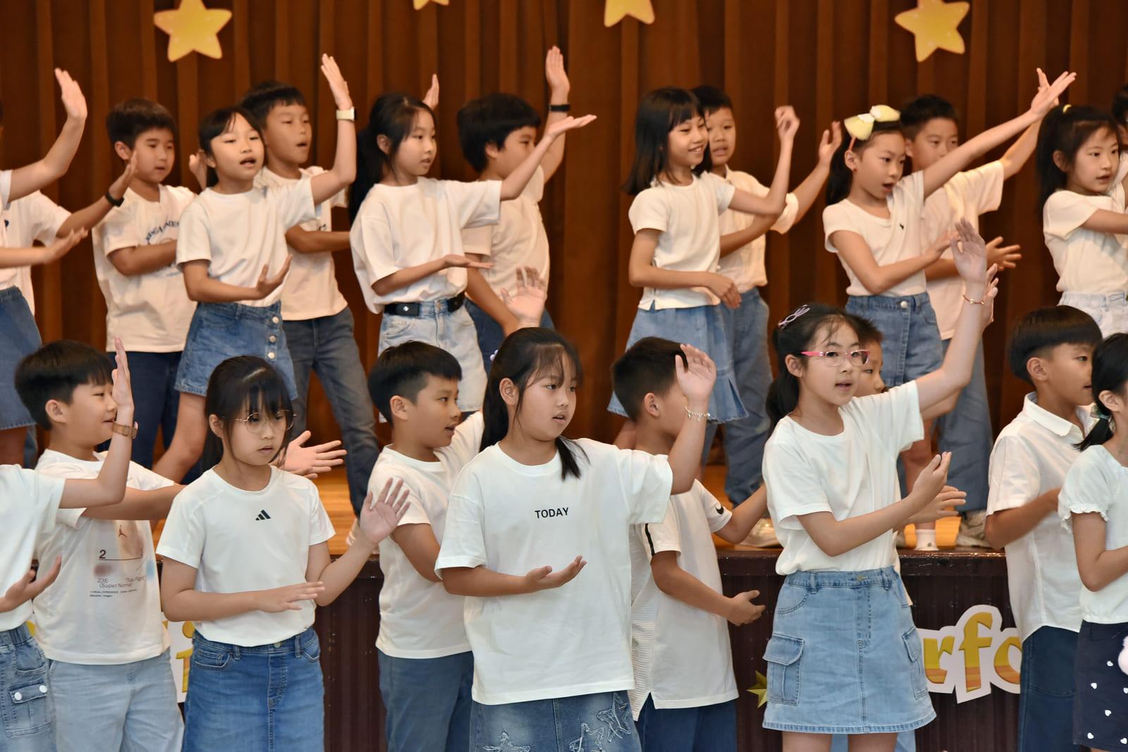 今年三年級的孩子,在中外英語老師的教導帶領下,從曲目的選擇、歌詞的理解、舞蹈動作到服裝造型的討論,其中的創意發想、討論溝通和合作練習,除了英語學習之外,師生們都從準備過程中學習到更多。