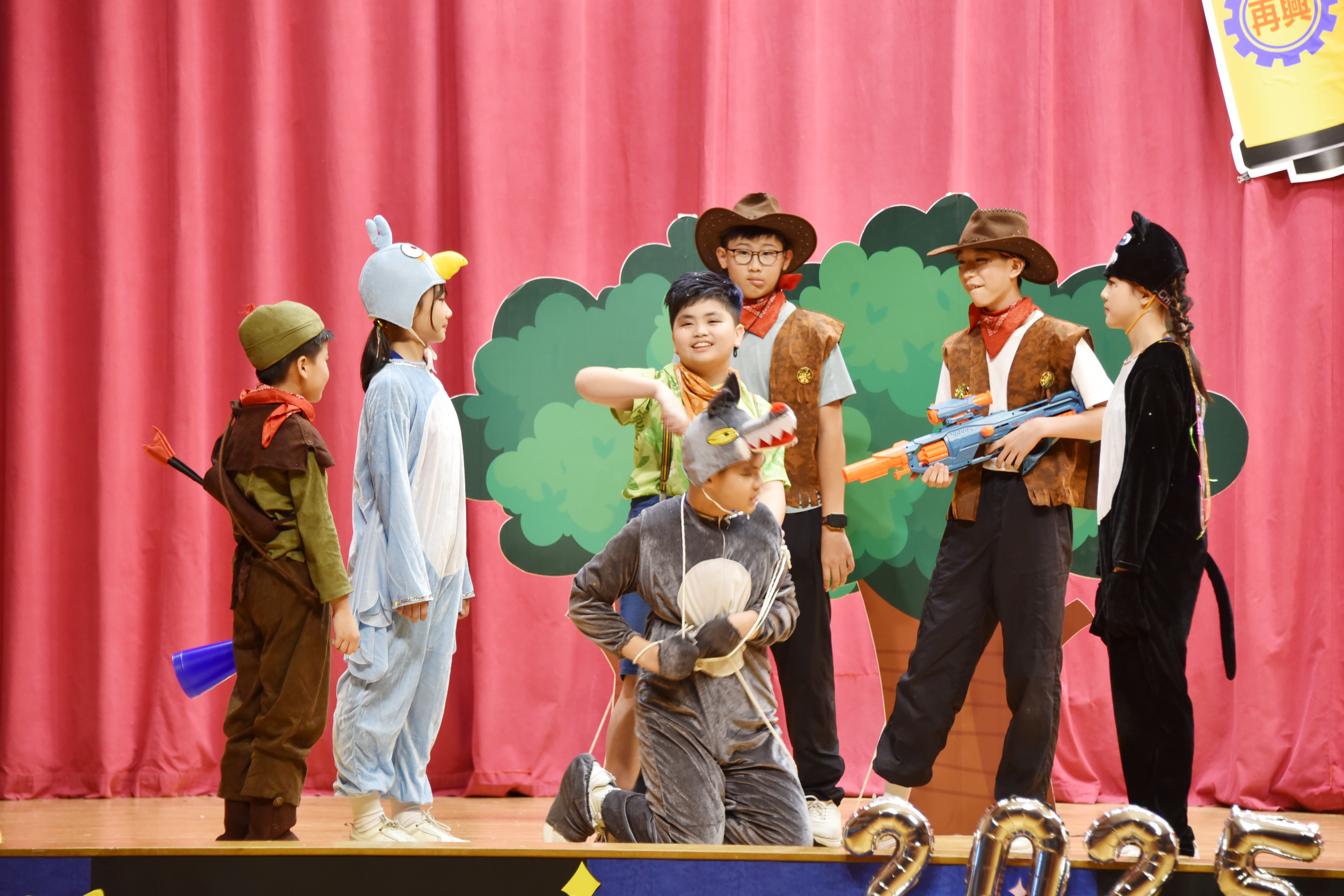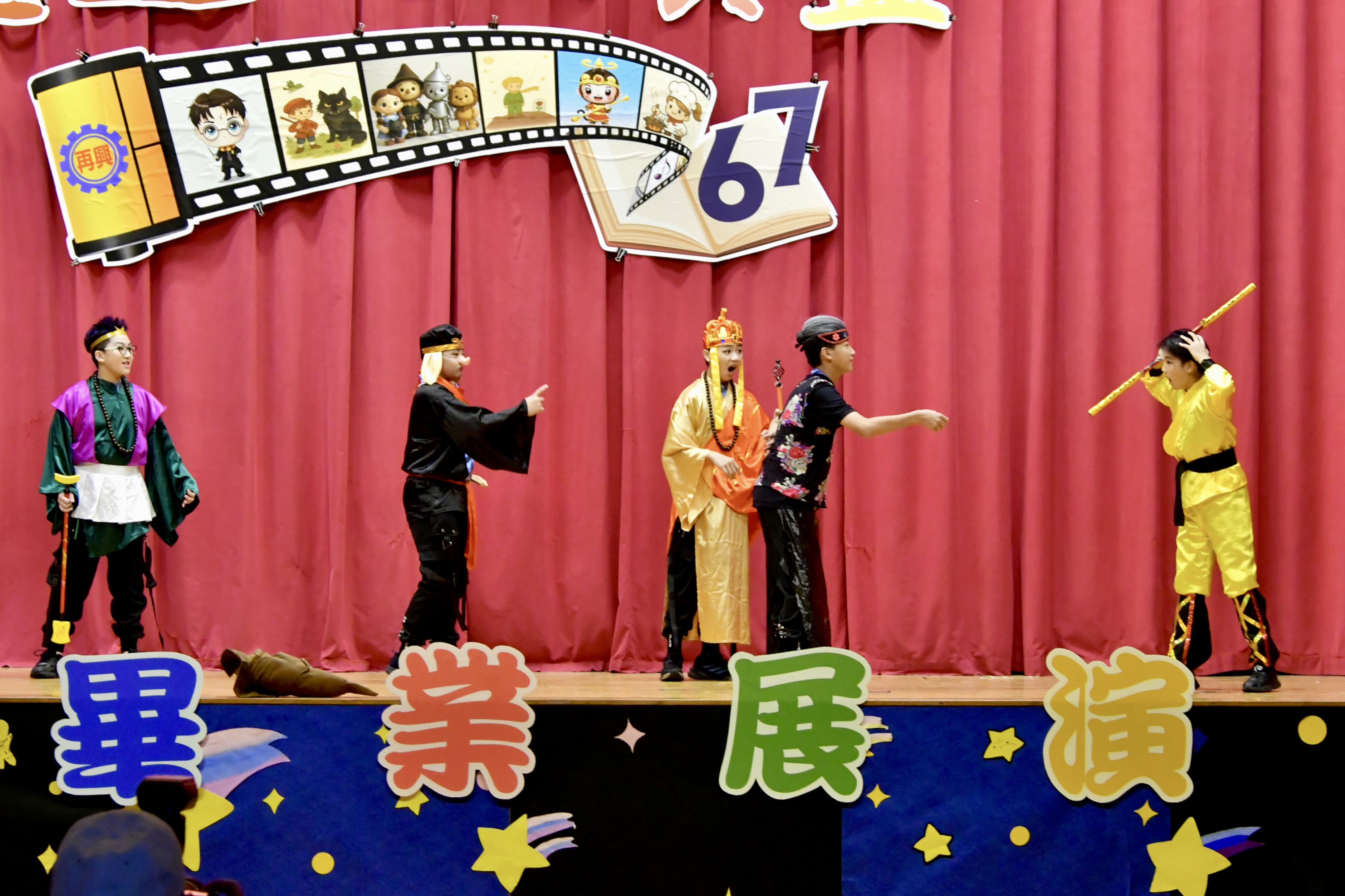 降妖伏魔-西遊記 六年義班透過趣味橫生的劇情與誇張的肢體語言重新詮釋《西遊記》,用創意呈現降妖伏魔的精彩過程,更傳遞出合作、堅持與信任的可貴精神,為整場表演劃下深刻記憶。