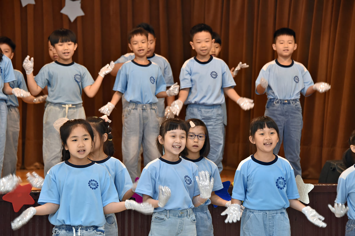 成果展除了自製英語影片,每班更帶來充滿活力的英語歌曲演唱與舞蹈表演。孩子們在舞台上唱出練習多時的英語歌曲,展現出高度的自信與團隊默契,現場氣氛熱烈,令人興奮感動。
