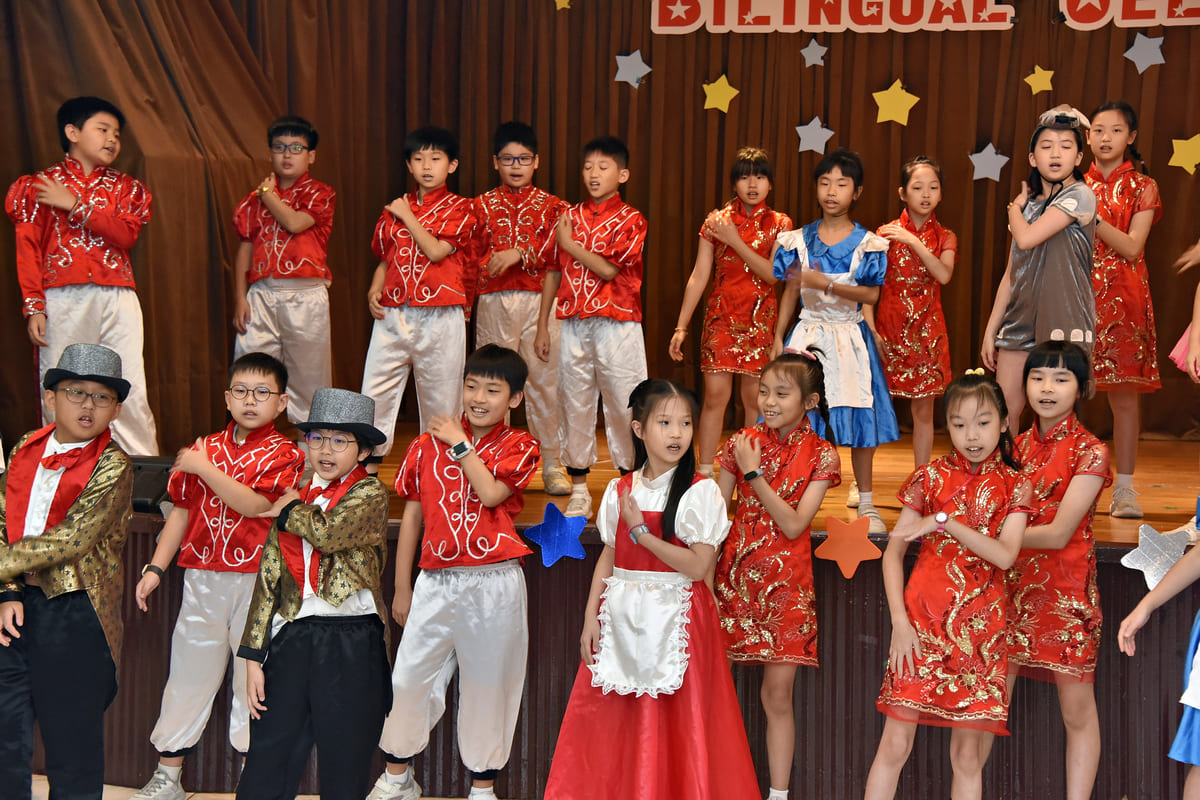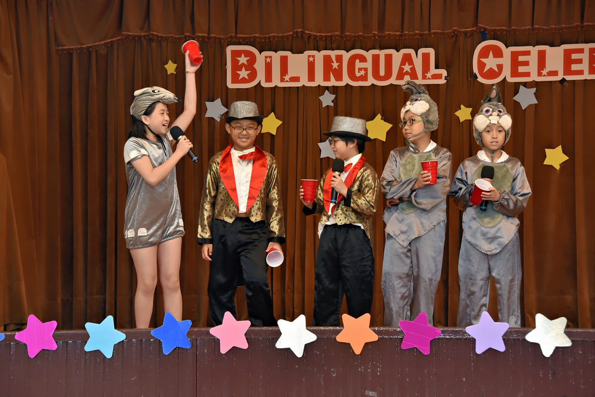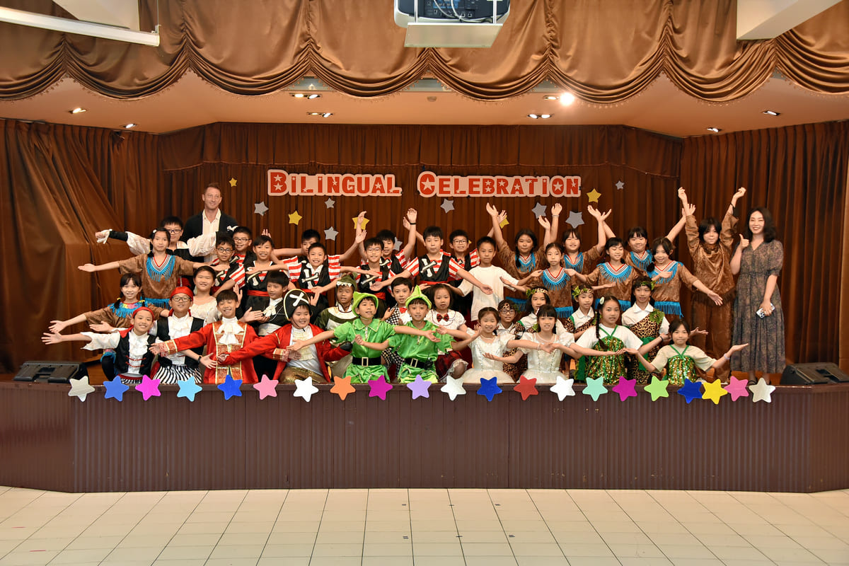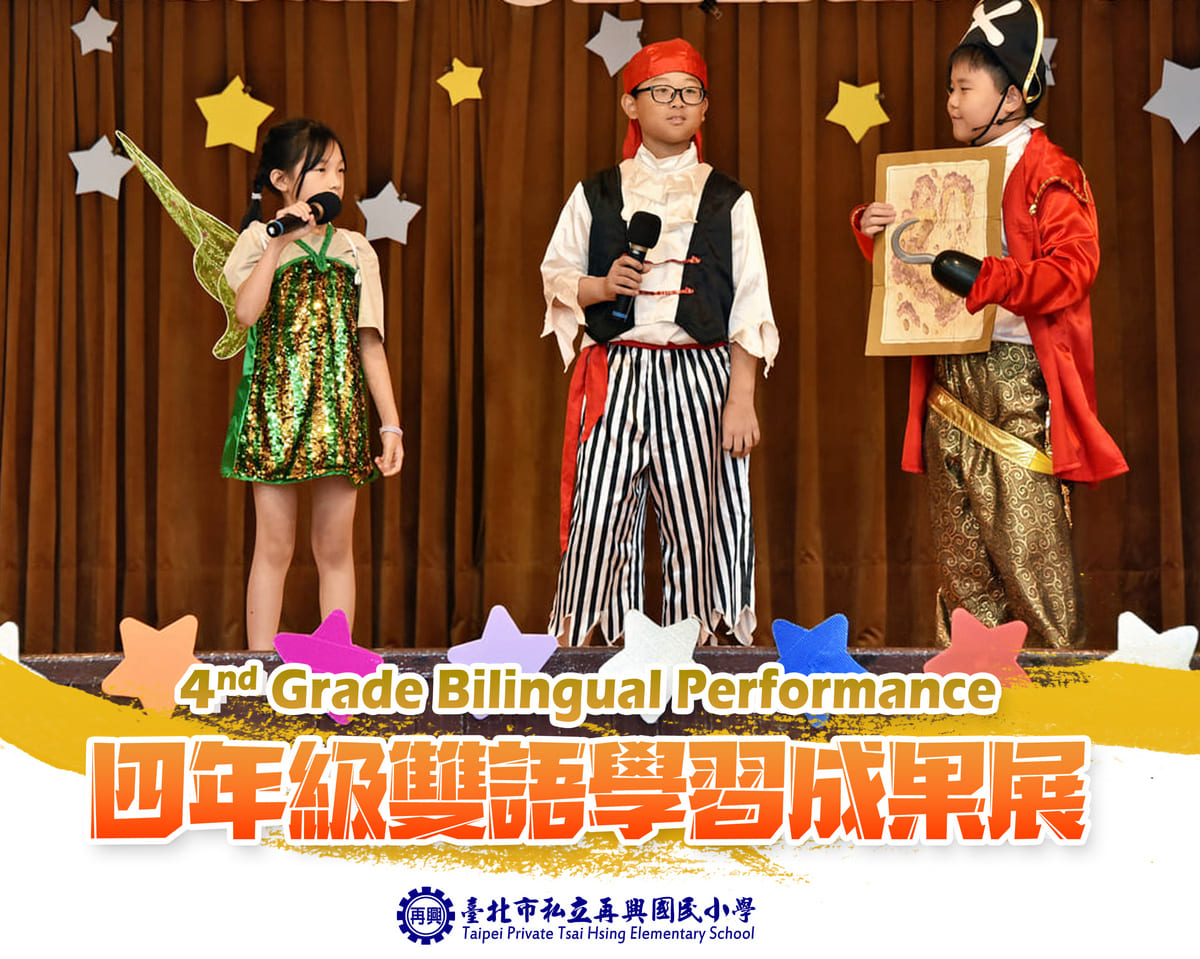 四年級雙語學習成果展於學期末熱鬧登場,今年仍以「迪士尼經典卡通故事」為主題,透過英語戲劇與歌舞表演,展現學生的英語學習成效。外籍教師根據每位學生的個性特質精心安排角色與劇情,讓每一位學生都能在舞台上發光發熱。
