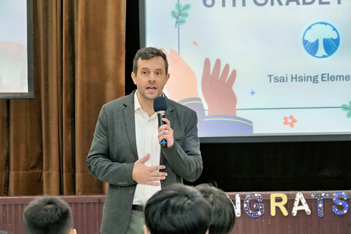楊珩校長致詞感謝家長們的對學校課程的支持,對孩子的學習陪伴與鼓勵,感謝中外英語教師的教學熱情和專業指導,也肯定學生們在課程中展現學習熱情與創造力。透過國際課程與數位工具,孩子們不僅提升了英語能力,更建立了自信與國際觀。楊校長更鼓勵學生們繼續前進精進,讓學習永不止息,讓創意無限伸展。
