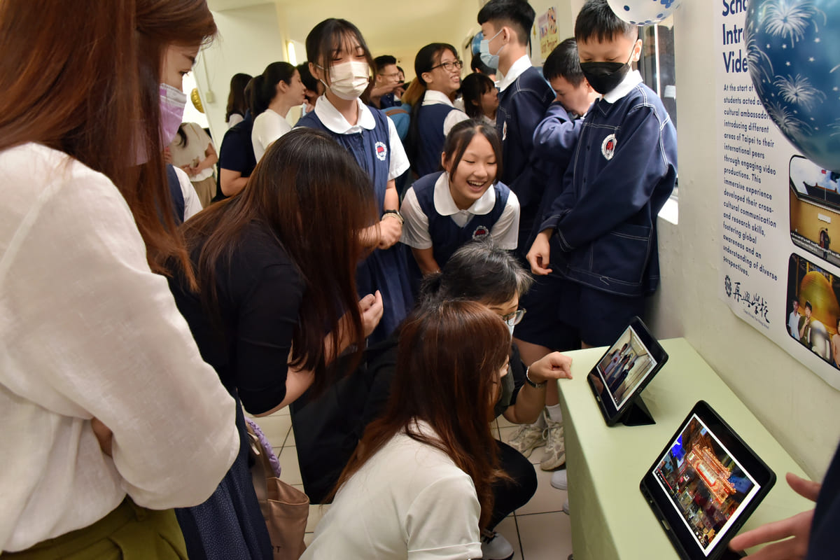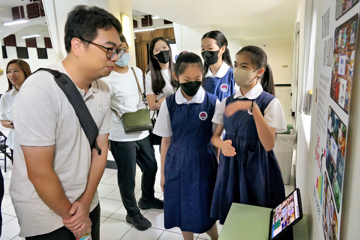 學生們在展場中展示了多元主題的英語學習作品,包括多媒體簡報、自製短片介紹、數位設計海報與主題研習報告。每一件作品都由學生們現場以英文說明,呈現出學生對主題的深入理解與創意思維,透過數位技術讓語言和跨領域學習變得更有趣、更具實用性。