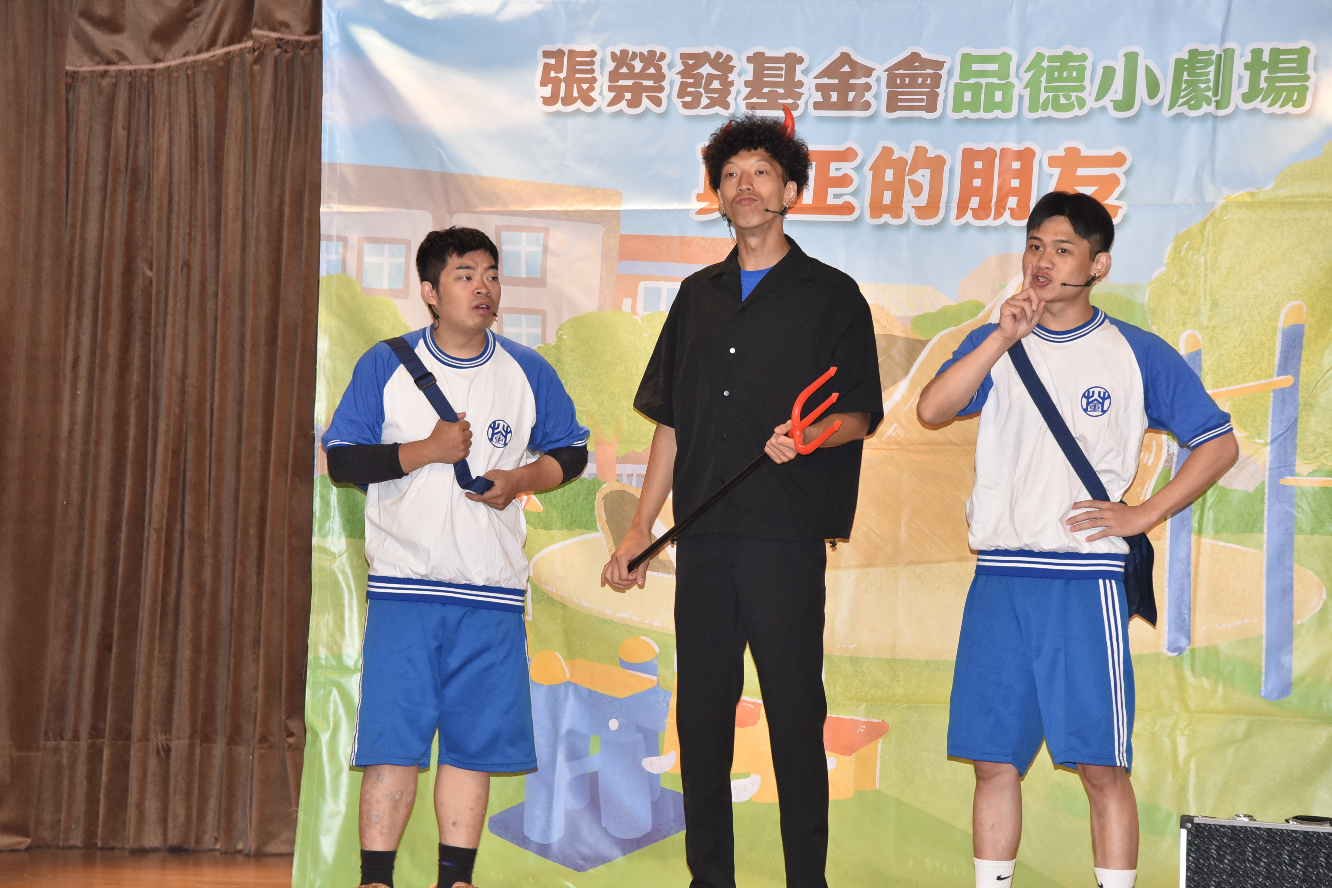 | 戲劇是最好入口的藝術形式,透過主題故事,傳達品格教育的重要性。9/24這一天學務處安排了一場品格教育戲劇欣賞,為的就是讓孩子們能在趣味中學習,在快樂中成長。透過這次的演出讓孩子了解1. 理解善惡因果2. 培養真誠善意3. 反思選擇與影響4. 鼓勵正向價值觀,期待這次與張榮發基金會的合作,能給孩子種下不一樣的種子,期待它發芽的一天。 |