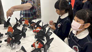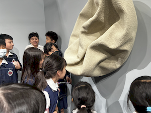 途中,學生們意外巧遇文化部李遠部長,並共同欣賞新銳藝術家杜宜蓁作品《序曲》,嘗試思考作品中對觀眾拋出的提問。這場跨越世代與角色的對話,為孩子們的觀展旅程留下難忘的回憶。