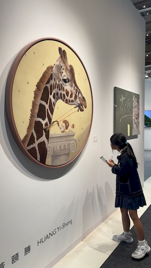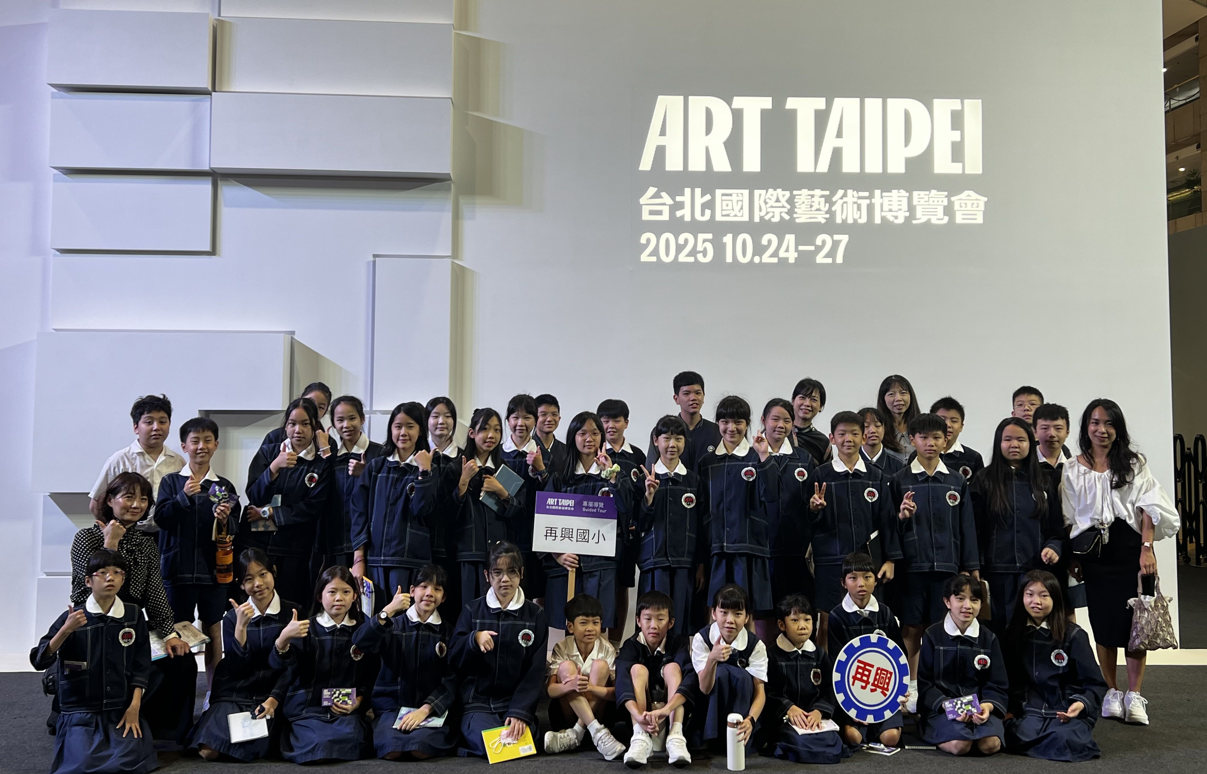延續前次良好的成效,再興小學今年再度帶領學生參訪 ART TAIPEI 台北國際藝術博覽會,並將行程延伸為全日參觀,讓孩子在更從容的時光裡,與藝術對話、與美相遇。10月28日上午,36位學生在專業藝術教師團隊的陪伴下踏入展場,在專人導覽與現場互動中,展開一場心靈的美感之旅。 展覽伊始,工作人員先介紹參觀規範,並邀請學生「傾聽作品的召喚」,以開放的心靈去感受藝術的語言。隨後,孩子們在導覽員引領下走進「MIT新人推薦特區」與「台灣原住民族藝術特區」。在新人特區裡,他們看見劉恩霖、劉星佑等八位新銳藝術家以繪畫、雕塑、攝影、動態影像與裝置等多樣媒介,探索當代觀看的可能。這些藝術家從日常「理所當然」的角落出發,鬆動既有的框架,使觀看不再只是視覺行為,而成為介入、提問與反思的過程。學生們與藝術家互動提問的片刻,正是一種學習的深呼吸——他們打開了新的感官之窗,也學會了以心觀物。