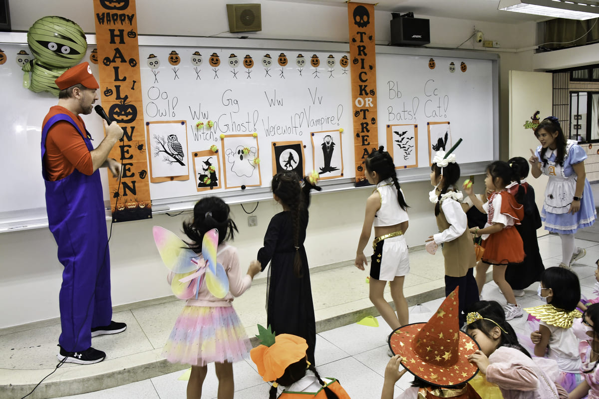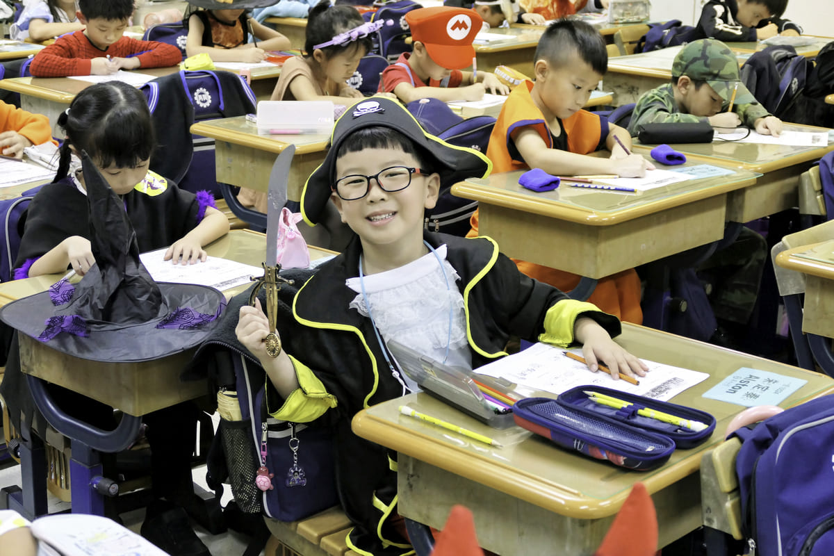 今年十月31日的下午,再興校園裡充滿了歡笑聲,一群穿著創意服裝,精心打扮的小朋友正蓄勢待發,要來挑戰重重英語關卡。