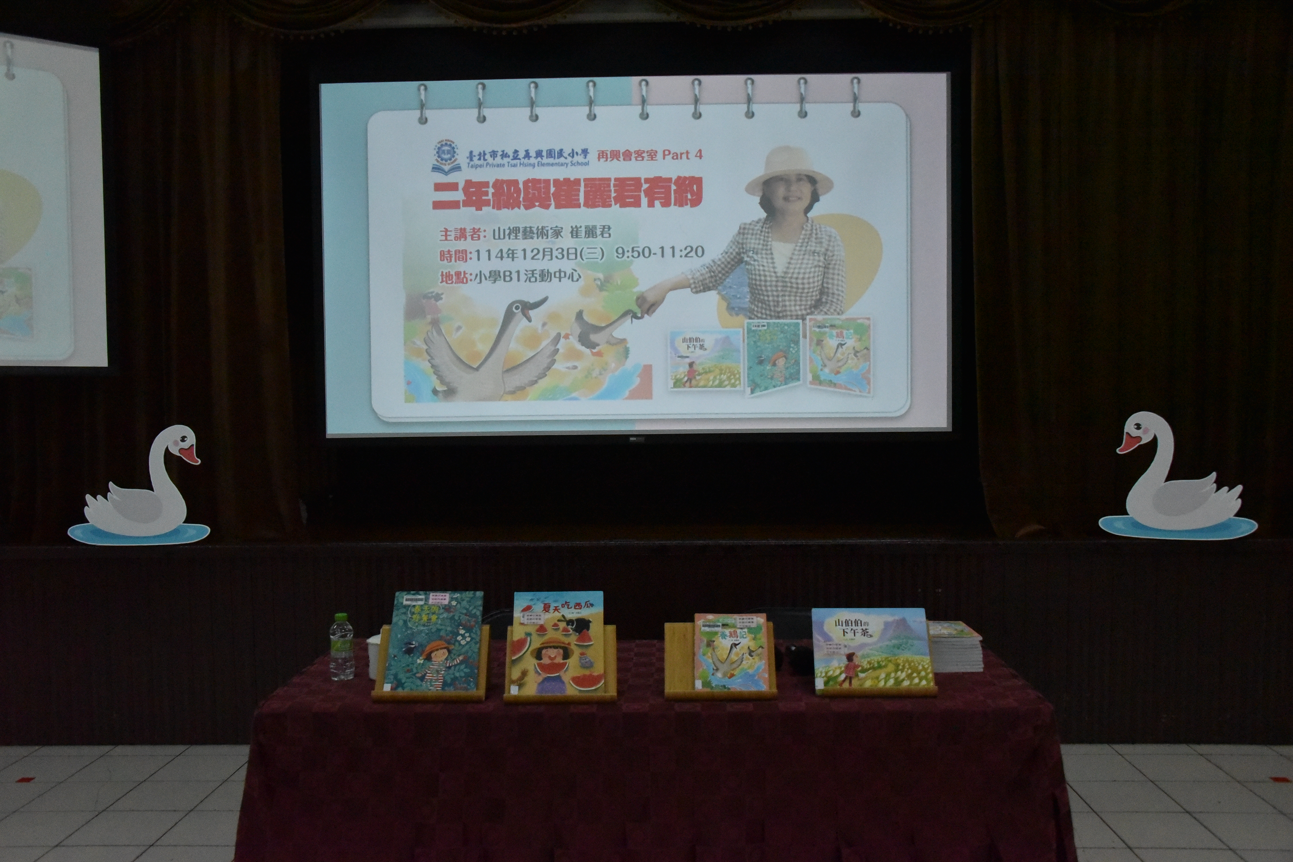 「故事不是憑空跑出來的,是從每天觀察到的事情慢慢長出來的。」崔麗君老師這句溫柔的結語,深深烙印在孩子們心中。聽完演講並展示完自己的小書後,孩子們的靈感開關徹底被打開了,熱烈地討論起未來的創作計畫:「老師,我家的狗也會像鵝一樣追人,我要做一本養狗指南!」、「我弟弟哭鬧的叫聲比鵝還大聲,我可以寫進故事裡!」