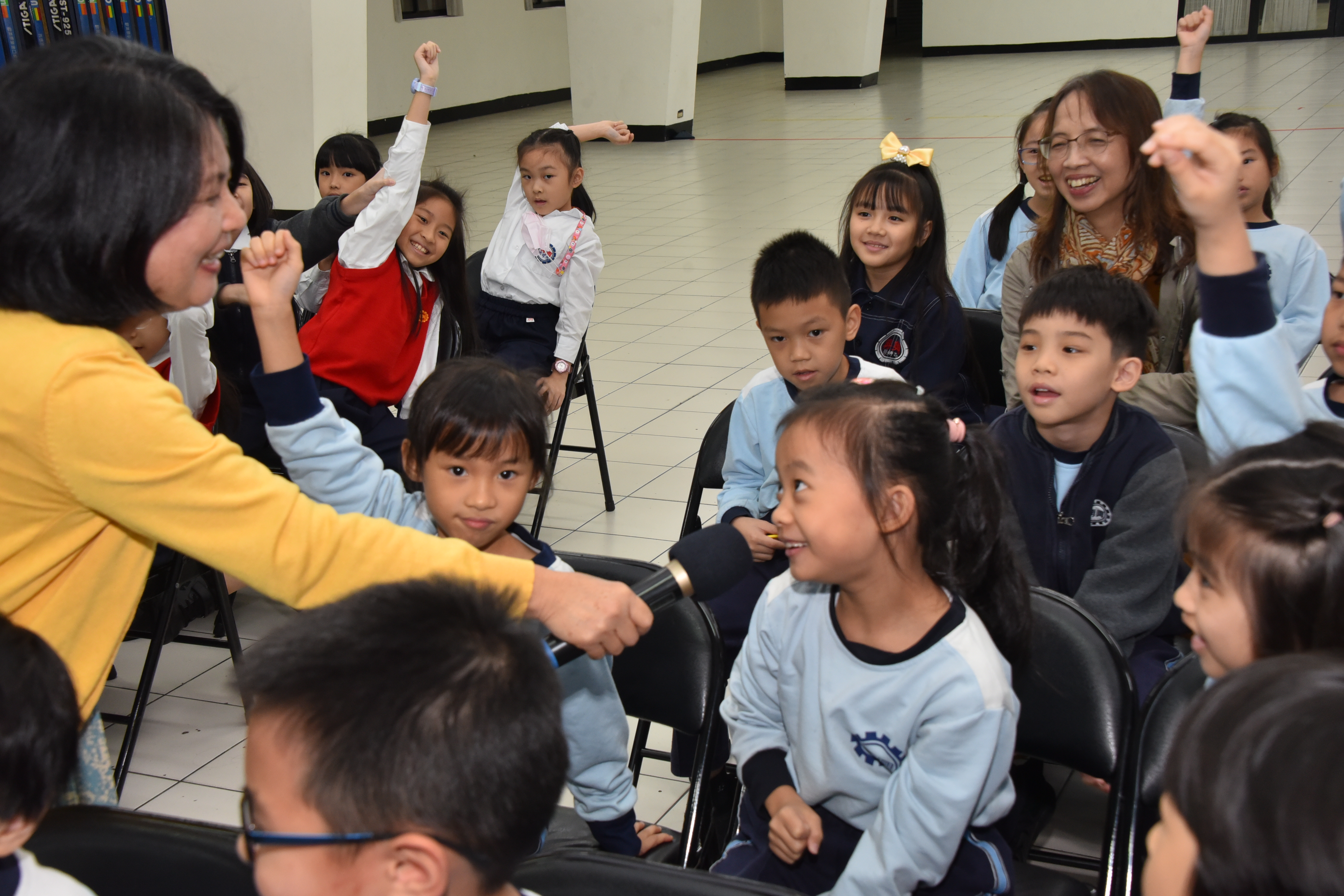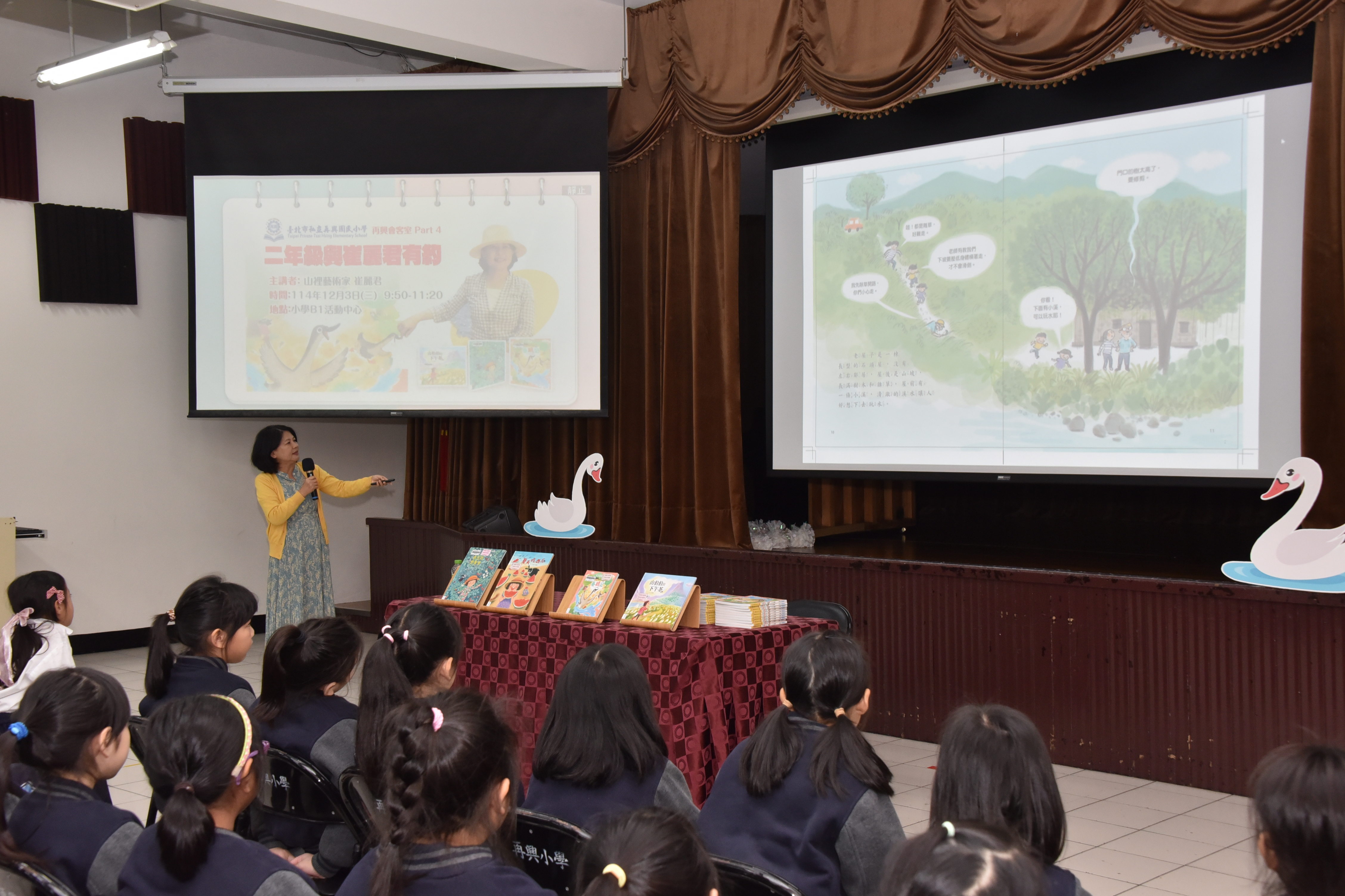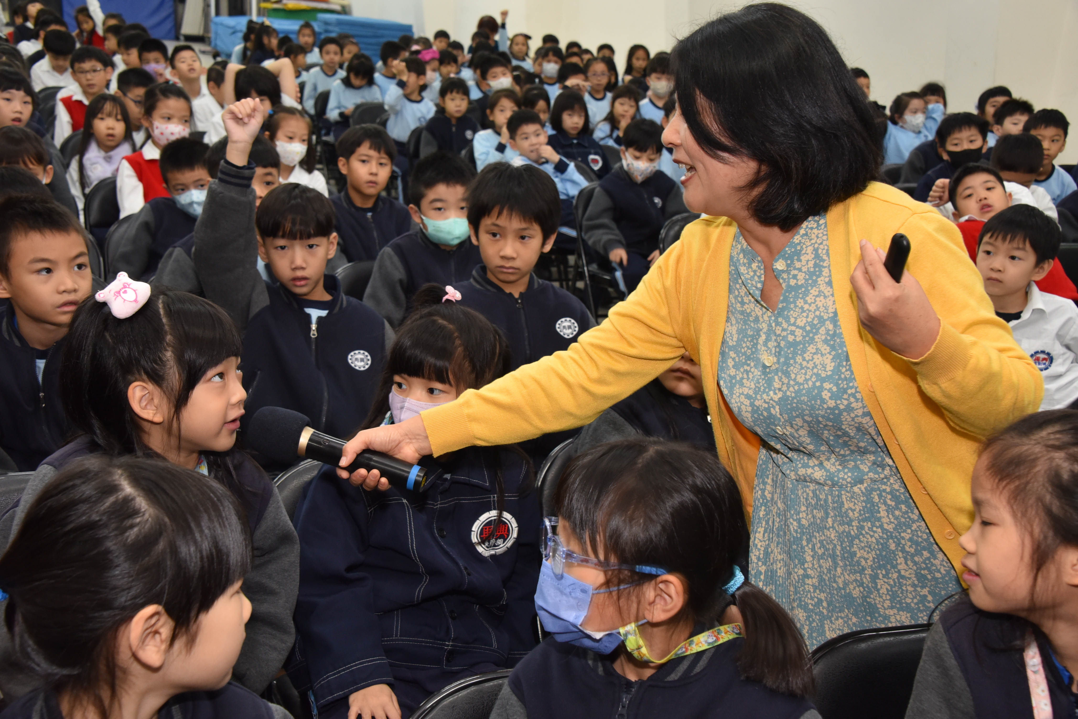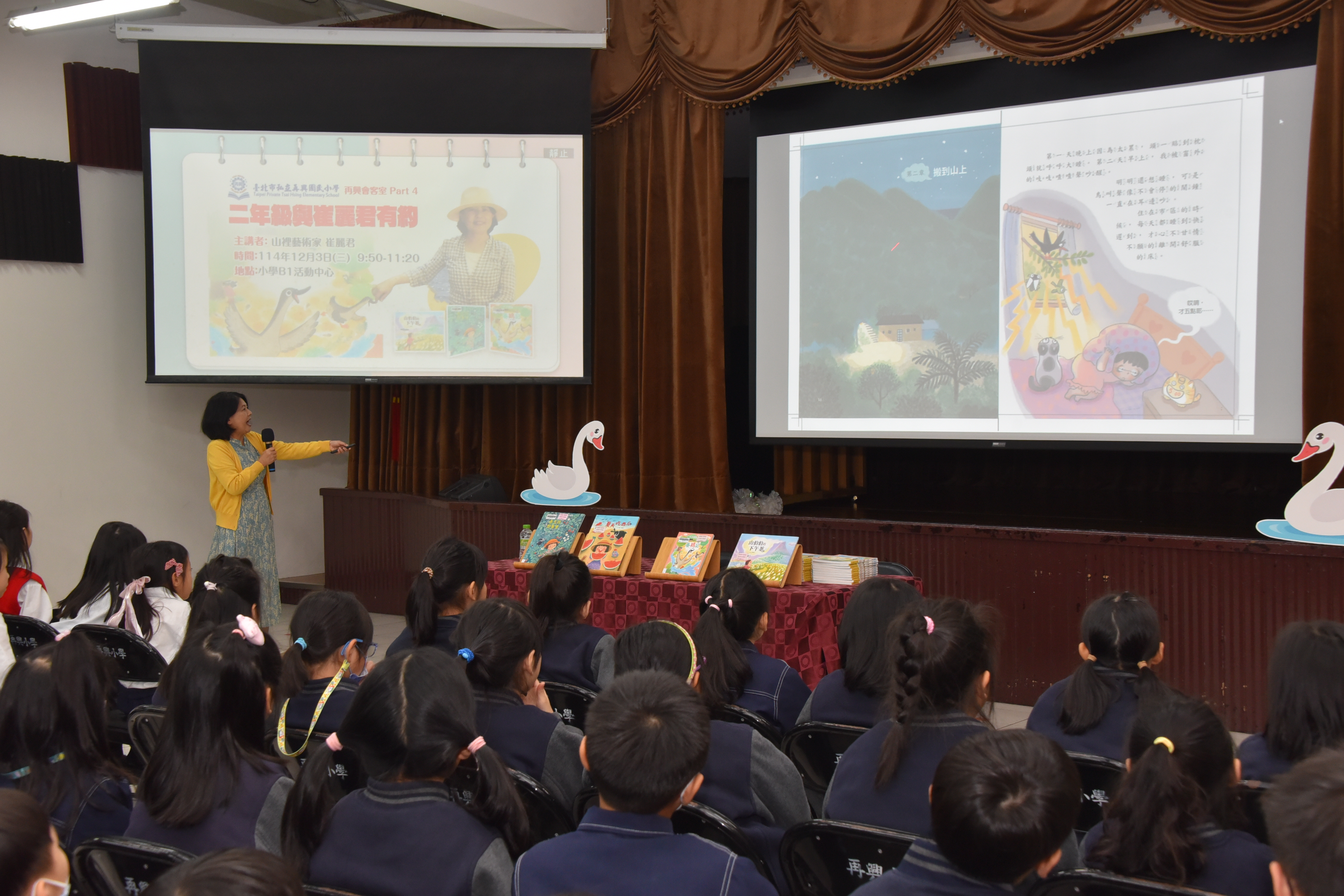 崔老師還幽默地分享,鵝是家裡最棒的「環保廚餘桶」,無論是多餘的青菜還是削好的蔬果,牠們通通來者不拒。不過,最讓二年級孩子們笑得東倒西歪的,莫過於老師形容鵝的便便:「真的是走到哪、拉到哪!」這份直率與真實,讓孩子們看見了養育生命的辛苦與樂趣,也明白了故事中那些好笑的橋段,全都是來自真實生活的積累。