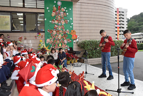 點燈之後,由董宴均老師指導的一年信班小朋友,帶來歡樂的聖誕歌曲表演。孩子們歡快的歌聲像一群小天使,把「校慶快樂」與「祝福平安」送給每一位在場的家長與師生,也為這個特別的日子畫下溫馨的註記。