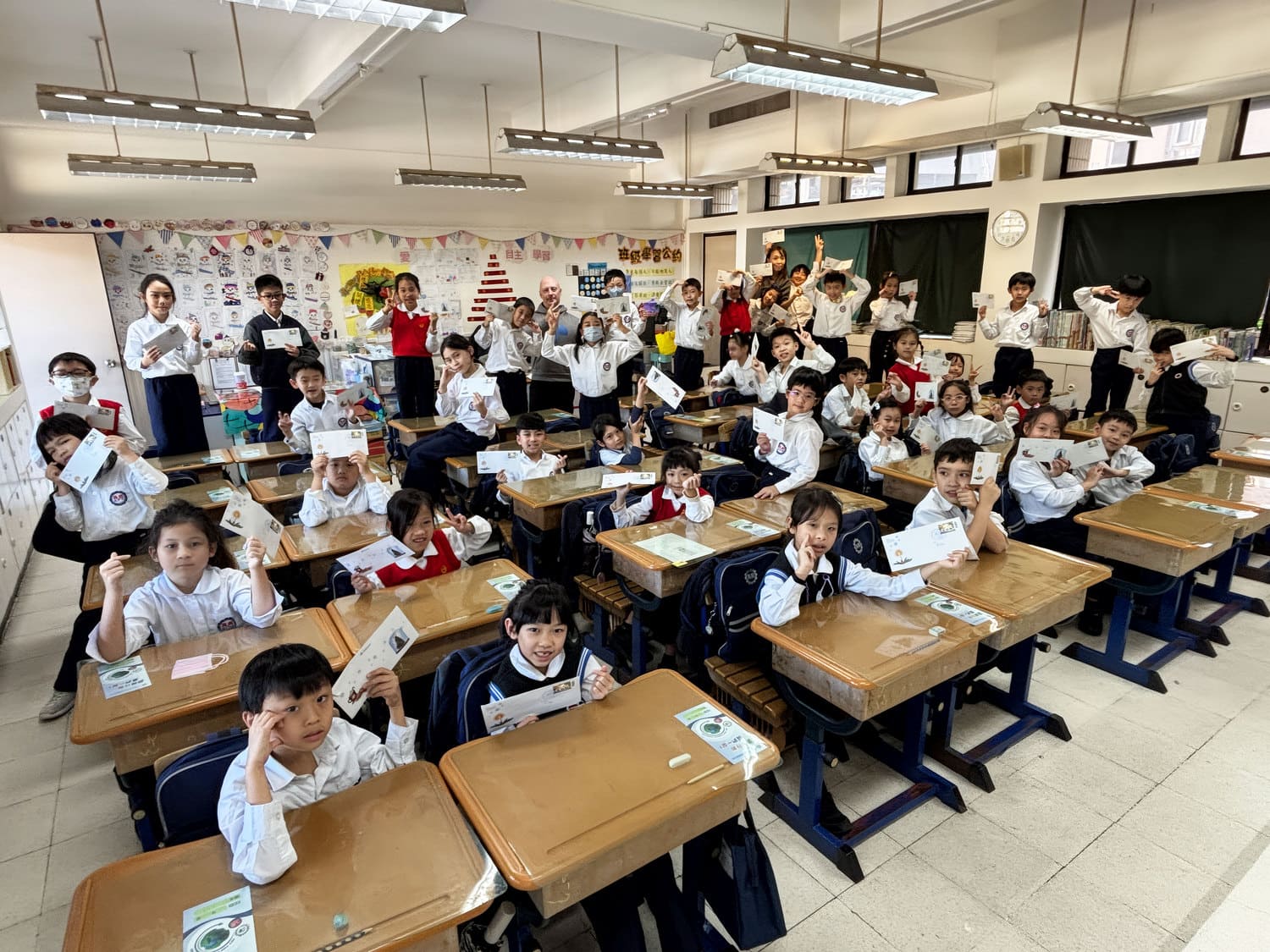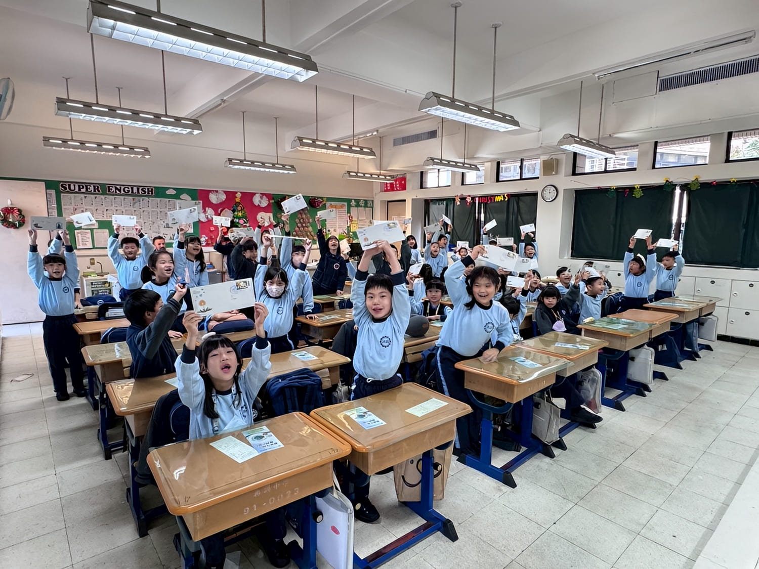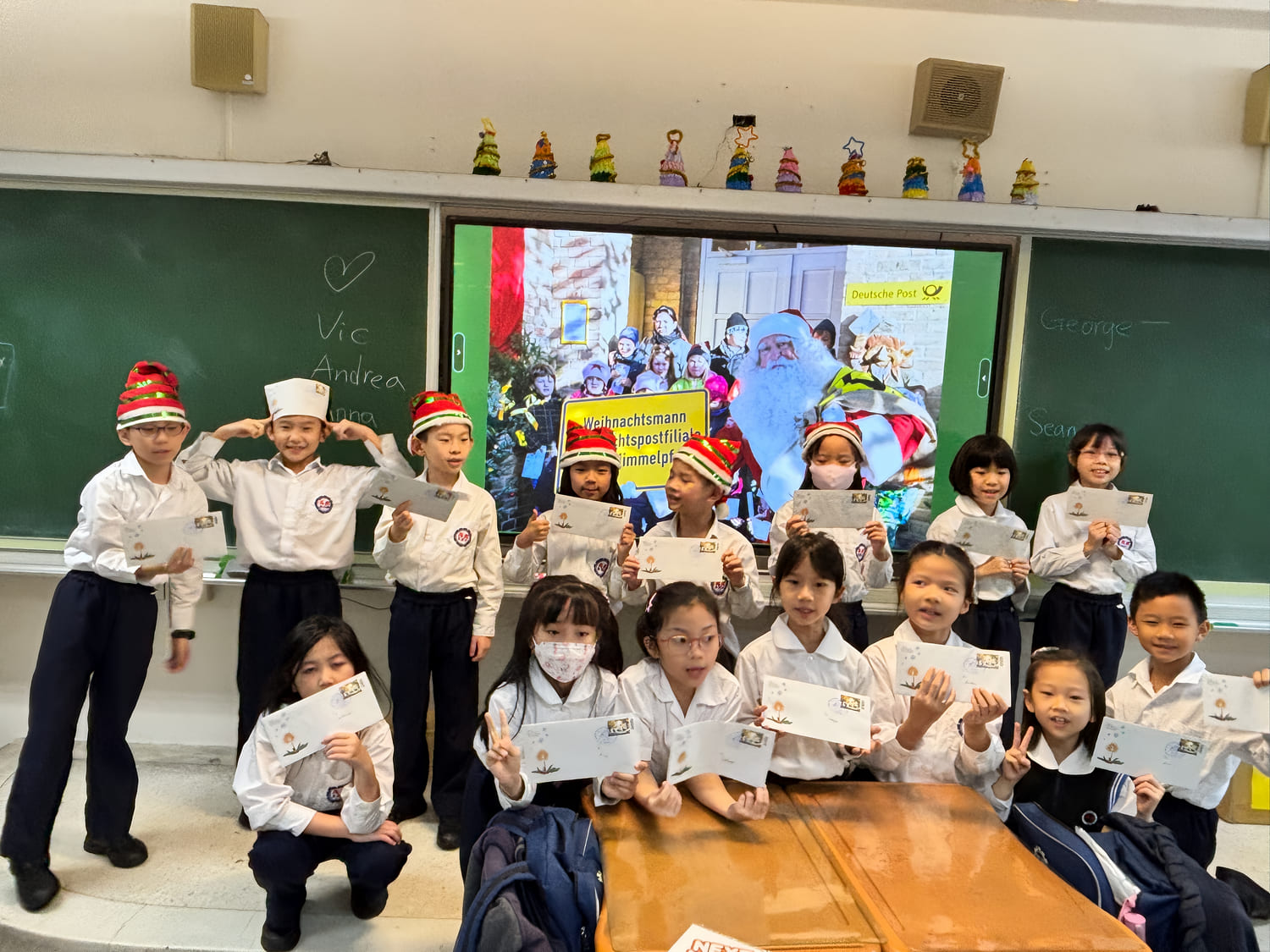 二年級的英語老師則帶著孩子們寫信給聖誕老人,簡單的英語、清楚的表達,加上手繪的可愛圖案,每一份信紙都充滿了省思、期待與祝福。而德國的聖誕老公公在接收孩子們的誠摯訊息後,在校慶前夕寄來了溫暖的回信,師生驚喜之餘,相信這個世界充滿愛與希望,更願意把這份精神傳揚出去!