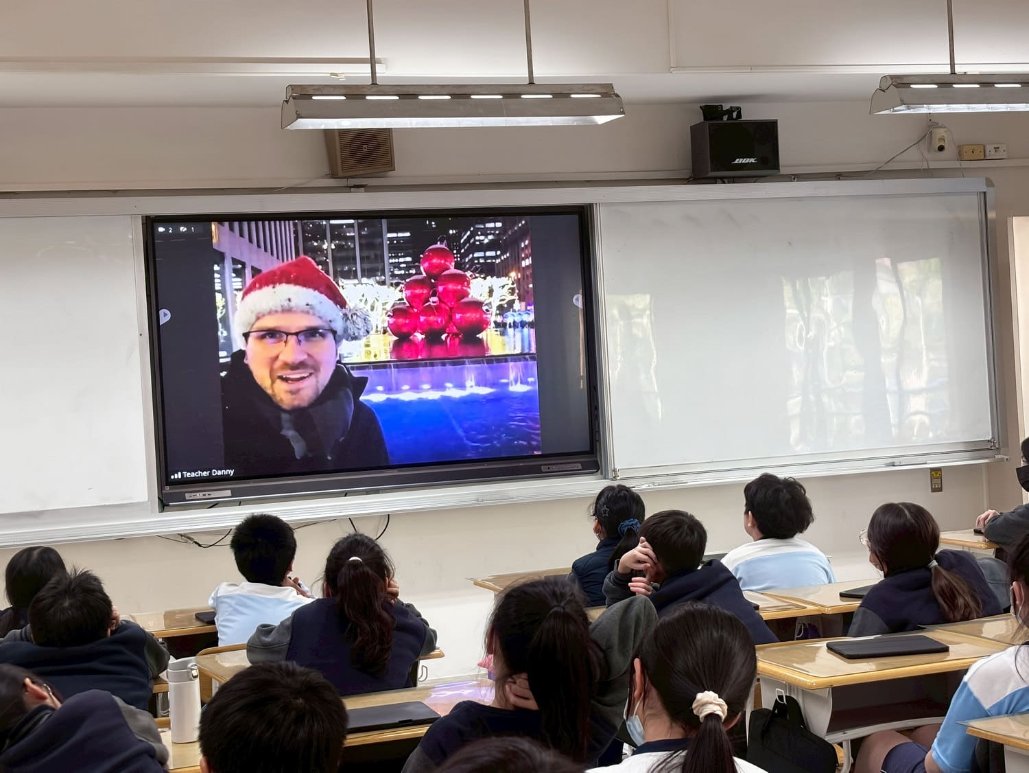 高年級的數位英語課程,由美國外師帶領著六年級的學生透過連線,實際走訪紐約的聖誕街頭。寒冷冰凍的夜晚,搭配滿街璀璨的燈飾,洛克斐勒滑冰場的浪漫,濃濃冬季節慶的氣息在教室傳開,再興學生臨場感受紐約人的過節心情與文化活動。