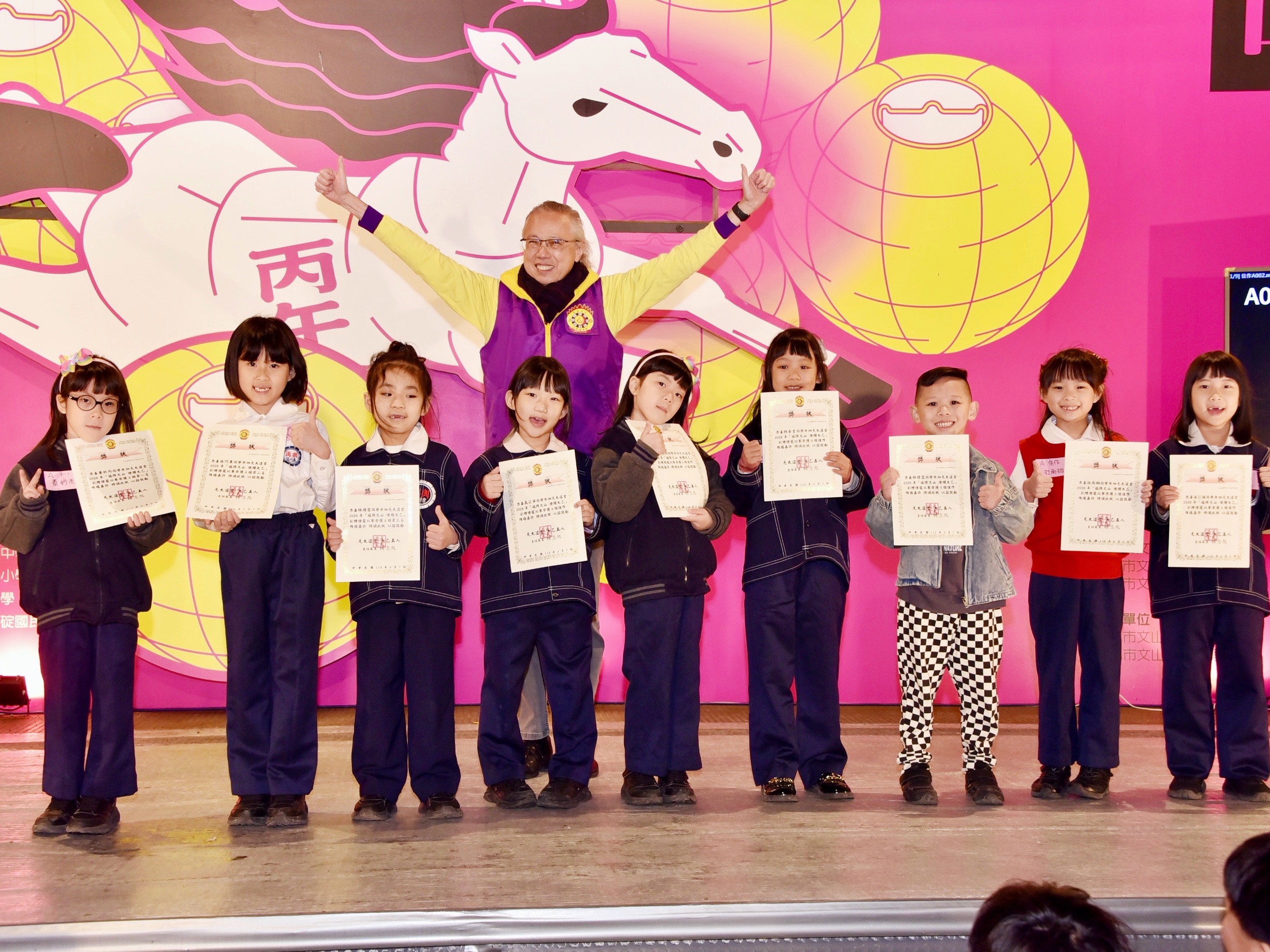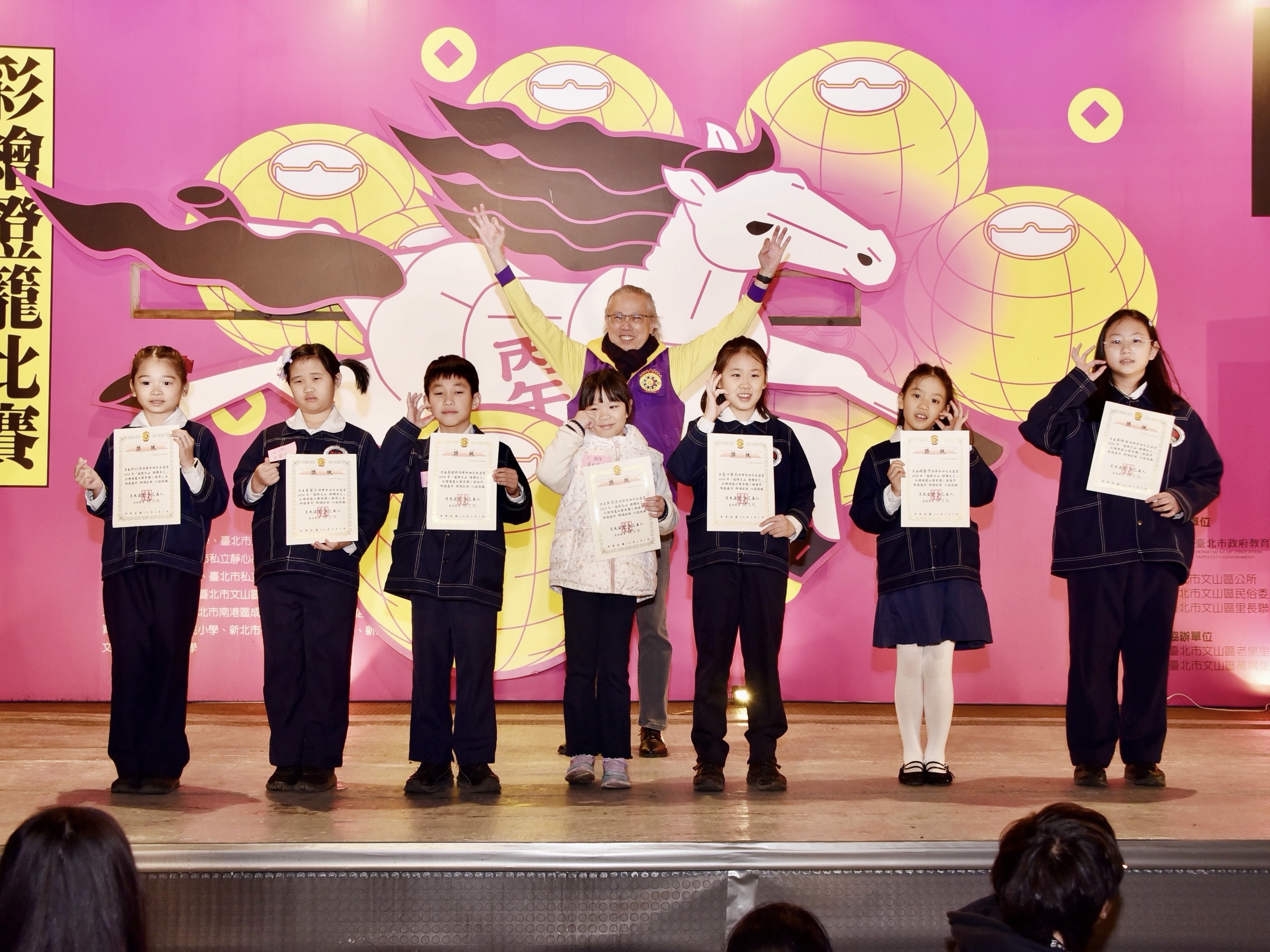 在燈籠彩繪比賽中,再興學生展現豐富創意,在眾多作品中脫穎而出,共有30位學生榮獲佳績,囊括多項前三名與佳作。其中一年級(A組)與三年級(C組)各獎項更由再興學子全數包辦,表現十分亮眼。此外,一愛陳偲寧同學勇奪「最佳人氣獎第一名」;而一孝蕭妡而、三孝李沂橙與四仁温清清分別榮獲各組第一名,展現傑出的藝術創意。