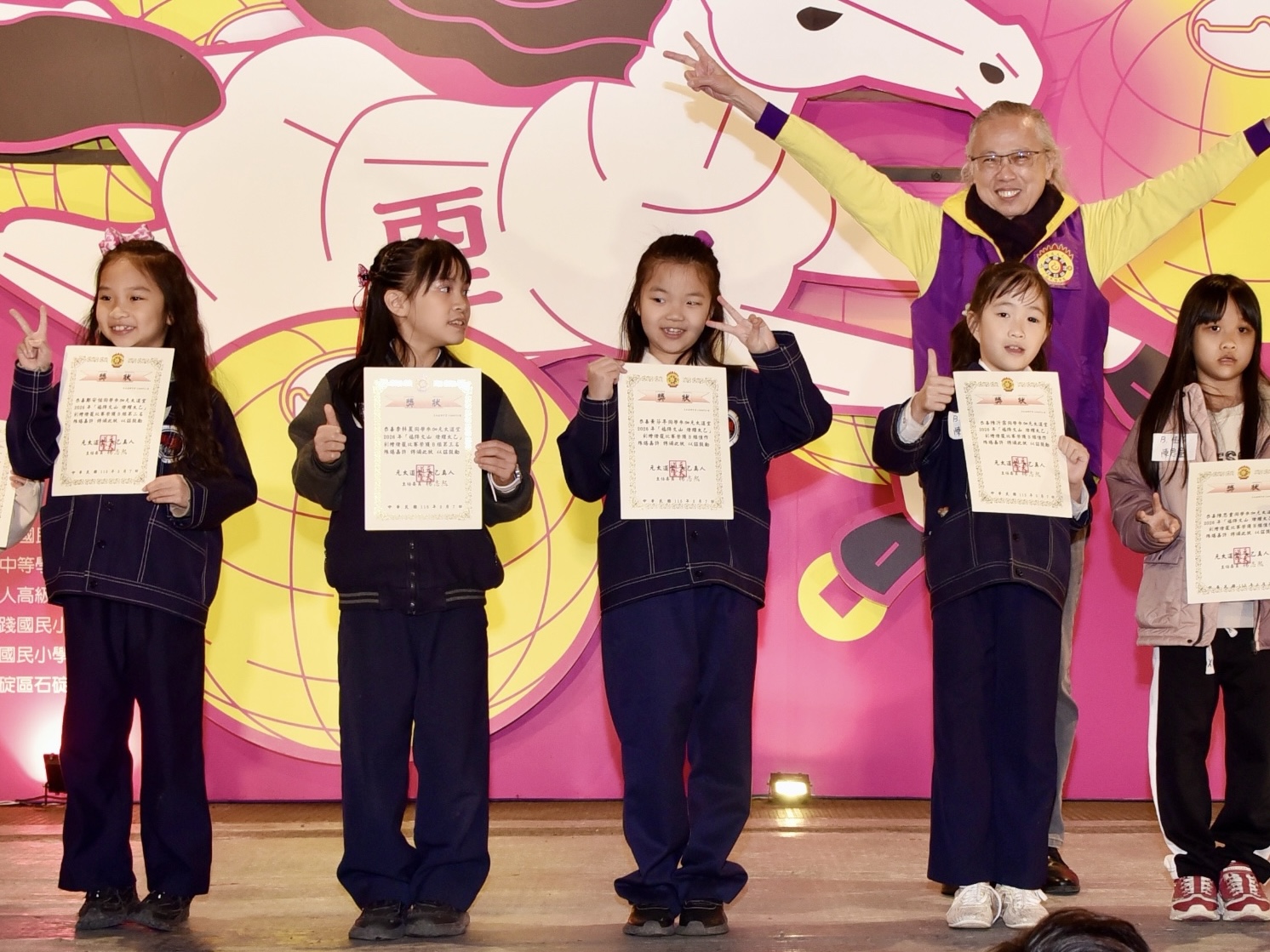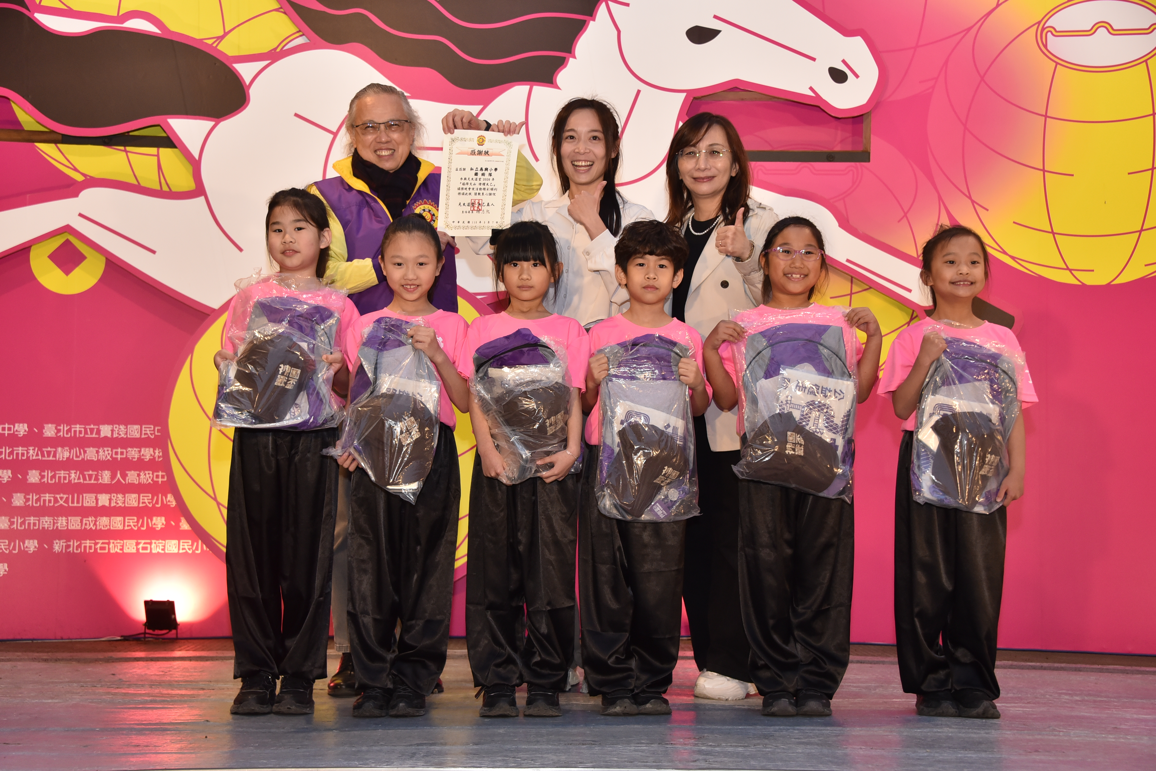 頒獎典禮現場演出同樣精彩,曾榮獲全國啦啦隊錦標賽綵球指定動作組冠軍的再興啦啦隊,以充滿活力與節奏感的舞蹈震撼全場,展現青春與團隊默契。接著,由黃筠蓁老師指導的二年級武術隊帶來武術表演,隊員們以弓步、馬步、仆步、虛步與歇步等基本步法,俐落演練「臺北市武術初級拳」,氣勢十足,贏得熱烈掌聲。