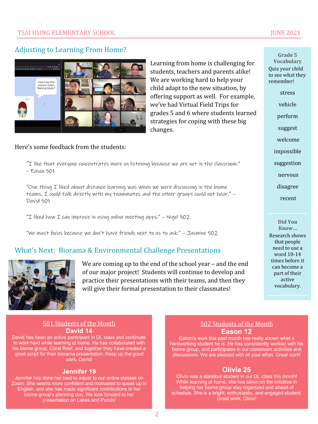 June 2021 Grade 5 Newsletter