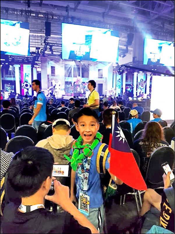 台灣十歲男童吳比帶著國旗赴美參加寶可夢世界錦標賽,要讓世界看見台灣。(家屬提供)