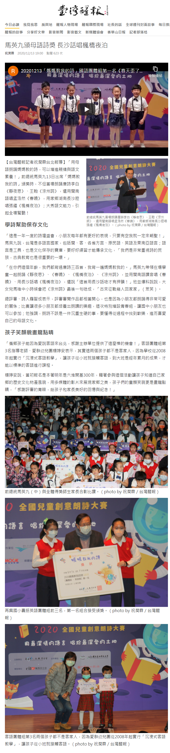 2020 全國兒童創意朗詩大賽 媽媽教我的詩 相關報導